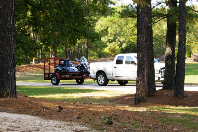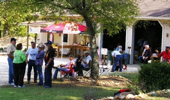 The fall leaves were just starting to turn and I thought as we left the house, we might have a good show along the way. The morning weather was perfect not cool not warm and the air actually felt soft. US hwy65 is ok with some good vitas but not alot of fun! Turning onto hwy9 has mostly swepers and one tight curve, if you ignore the occasional semi (cuts miles off thier path) it has the feel of a country lane. We talked little on the first part of this trip, these are roads known to us so we just took it all in. South of Morrilton hwy9 is all new to us and the senery changes to mostly pine forest, looking alot like the high mountains of New Mexico. We arrived in Caddo Valley which is a cross roads town with hotels, gas and food and our base for the weekend. The rally site is only a few miles away.