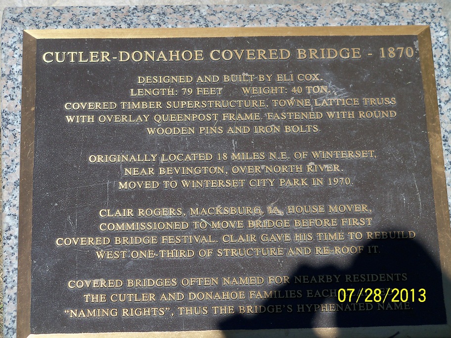 Our grandson Izan has been gone for a week out of a two week visit with his maternal grandparents, to Pennsylvania, so I decided to take Donna out to Winterset, IA. For those that don’t know, it is the home of the “Bridges of Madison County.” http://madisoncounty.com/index.php?page=the-bridges