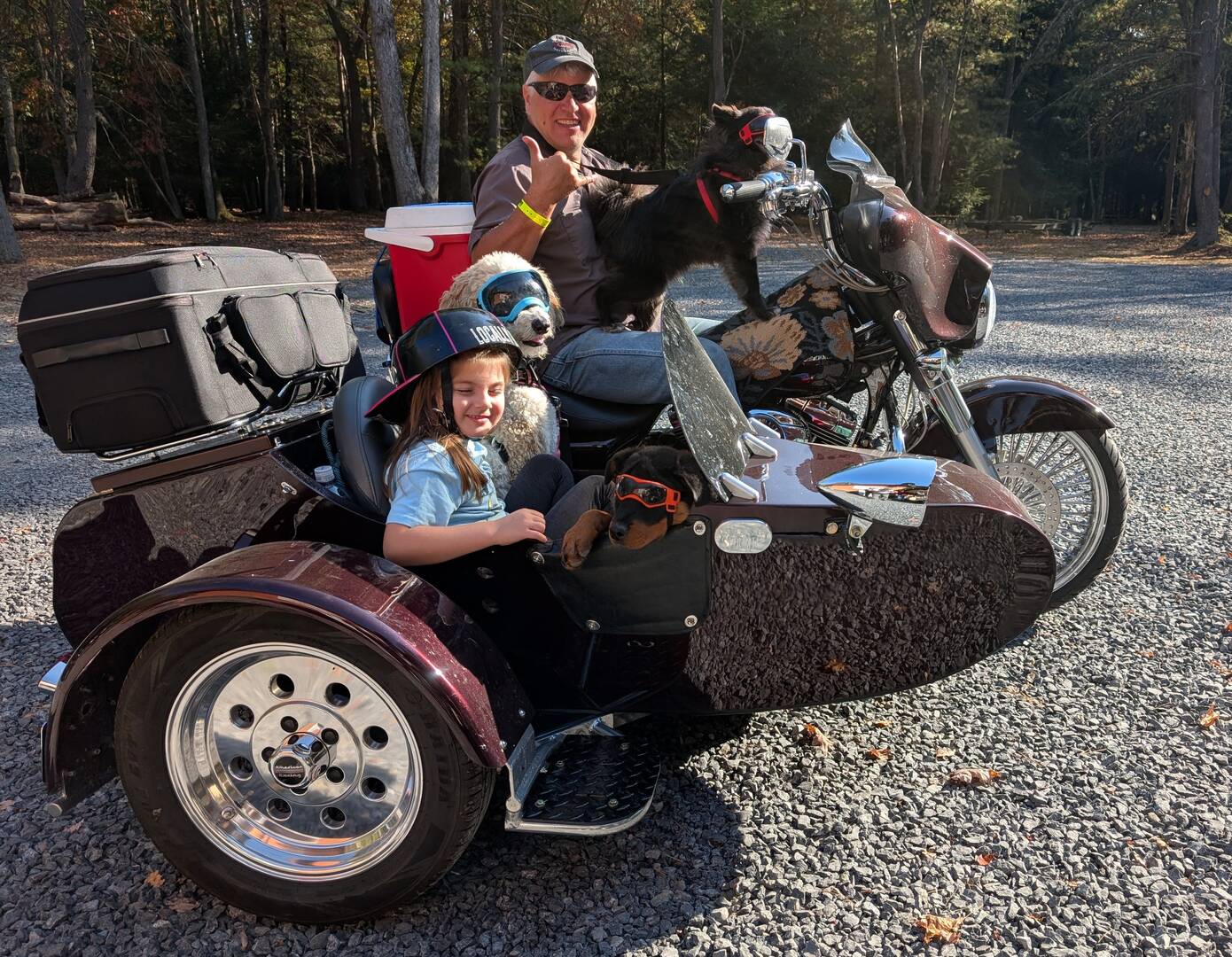 PA, OH, NY, DE, MD all checked in with 7 sidecar rigs, 5 two-wheel, 1 trike and 4 fuzzy friends.