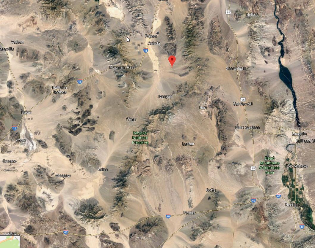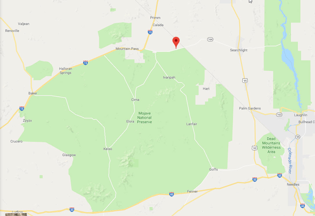 20 miles west of Searchlight, and 60 miles (or so...) south of Vegas.