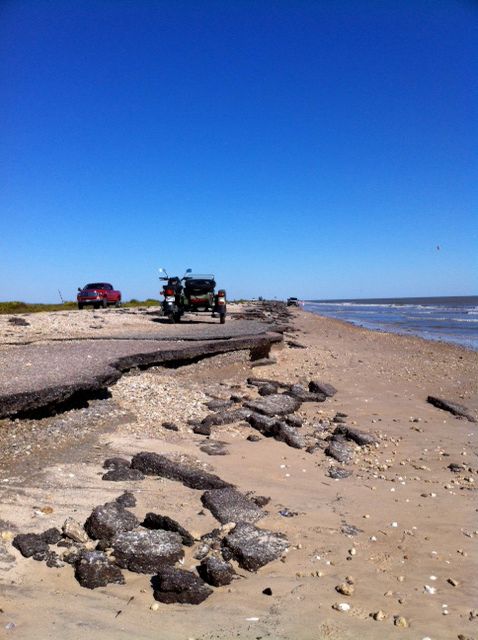 east of the ferry landing, on the BOLIVAR PENNINSULA, hwy 87 was washed away by a little coastal wind storm, a HURRICANE