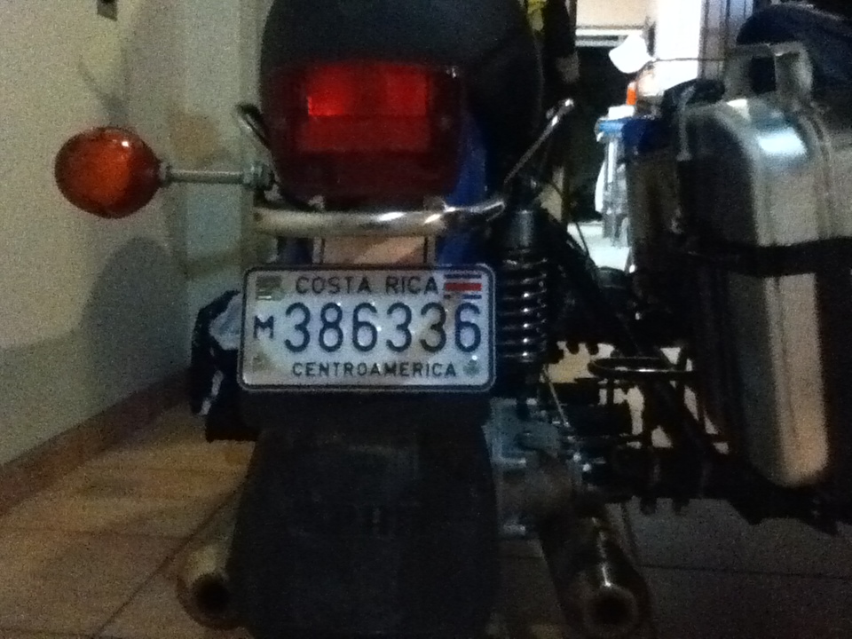 Today means yesterday Tuesday I got handed over in the morning the costarrican owners title of Sophie Travelair. a couple of typical errant rides to different offices later I have now the stickers for technical revision, paid road tax and liability insurance.(again somebody mixed up data and suddenly in the register my Ural was converted into a Freedom...and now again a single traction bike but 23kw and not 70 (imagine a Ural with 94hp...sounds like a dream,... Costarrican government makes it possible with a simple key strike))