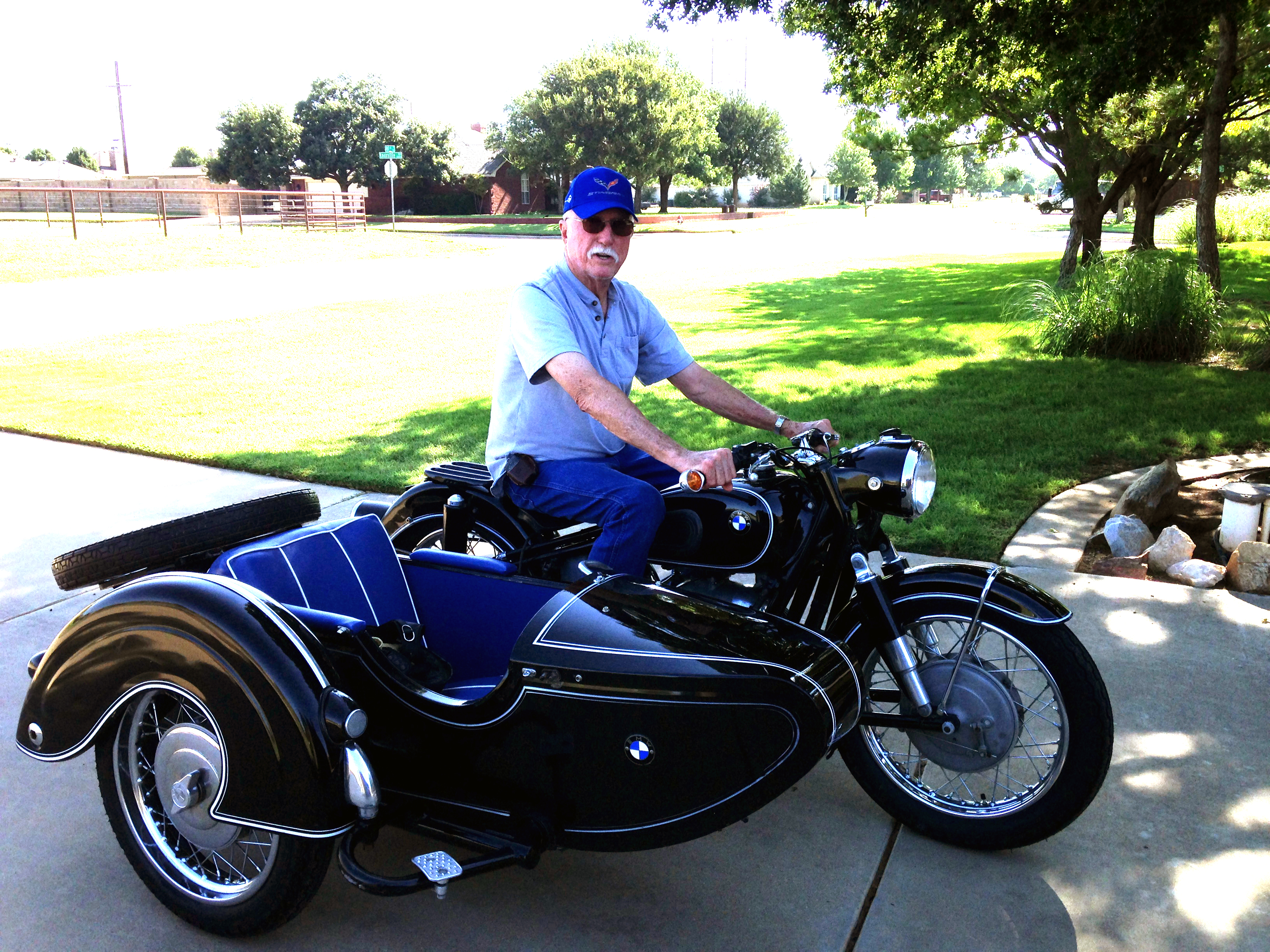 My old Pal Charlie Reaves bought the car only in Austin, got it home in a Uhaul trailer, then attached it to the bike shown. This pair has been together for at least 30 years, prolly more like 50. There is a long shot of this motor and sidecar on the cover of "Rider" magazine published in the late 60's or early 70's. I have a group photo of the attendee's of "Aspencade" in the mid 70s which clearly show this rig and it's then owner. I have been trying to buy this combo all this time. The only way I got it is for my old friend to expire, and I bought it from his son.