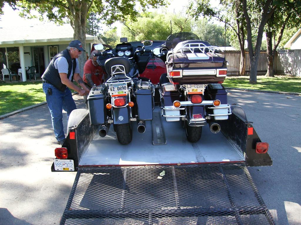I'm presently using a long single axle utility trailer. Removable side and head boards and tall loading ramp. Sidecar rig fits between the inner fenders OK but cannot use the tall sideboards as the tug foot peg hangs over the side. When we came to AZ last Fall I had the Savage solo rig crossways on the front of the trailer and a Kawasaki MULE 550 behind it and had to use longer metal stays for the tailgate. Load distribution was OK and the trailer has always towed well even with the Colorado PU we had before this RAM 1500. It is high off the ground with previous owner installed bigger tires that I've seen on similar units and the tailgate when up vertical is big drag when towing MT. I have sometimes removed it and screwed it down on the wood deck. Like the wood decks for securing wheel chocks and cribbage to help secure the load even when using HD tie downs. But would like a lightweight Alum one also. I guess anyway you can have the rig with you works the best. Plans are to take it back to WA this spring so we can use it there also. Been too cold in Phoenix this last week to ride but the weather persons promise better weather this week.