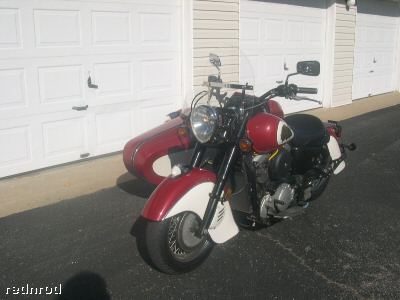 Thanks for the info Bob, it is exactly what I was looking for. As I said I have lots of sidecar riding experience, but none in the set up of the rig. I will try and get some measurements on the lean out, but it may be extremely difficult to get accurate measurements with the large fenders that cover virtualy the entire tire. I'll take a look and let you know how it measures up. When you say "lean out" I assume you mean lean the bike out at an angle away from the hack. Is that correct? The rig tracks true at all speeds with no drifting left or right (other than the pull), so I will assume that the toe-in is close to correct and the lean out is what needs adjustment. Thanks for the compliments on the rig.
