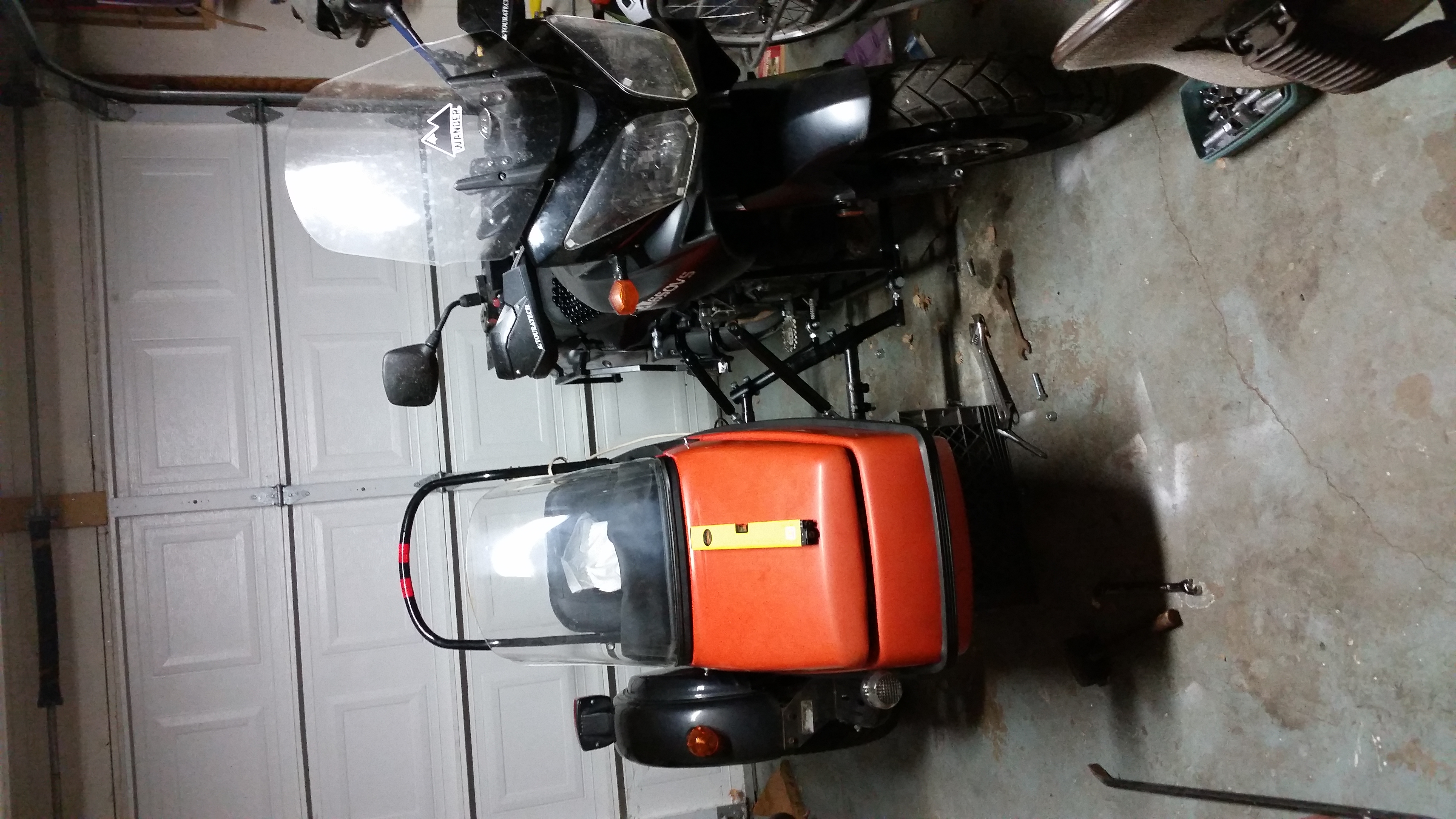 Sputnik sidecar I bought from DMC in January. Sidecar has less than 1500 miles on it. Brembo disc brake and BMW 1200 RT shock. The tonneau cover was rough when I got it, but it still attaches. Comes with heavy duty upper struts, all lights work. My daughter got sick of riding in it and my girlfriend just won't get in it, so I'm just going back to my bike solo. I have a DMC subframe for a V strom 650 if you happen to be looking to hook it to one of those 🙂