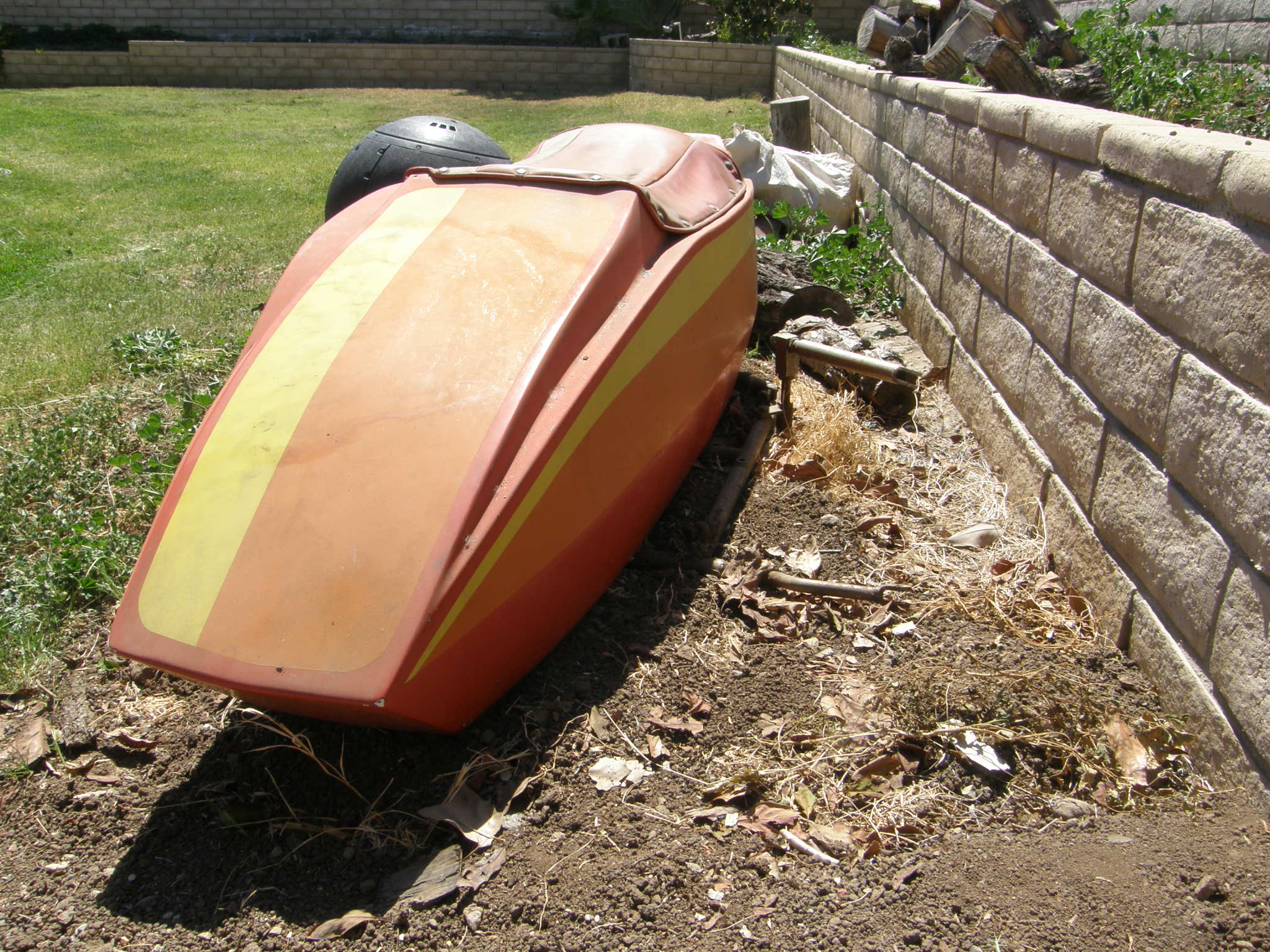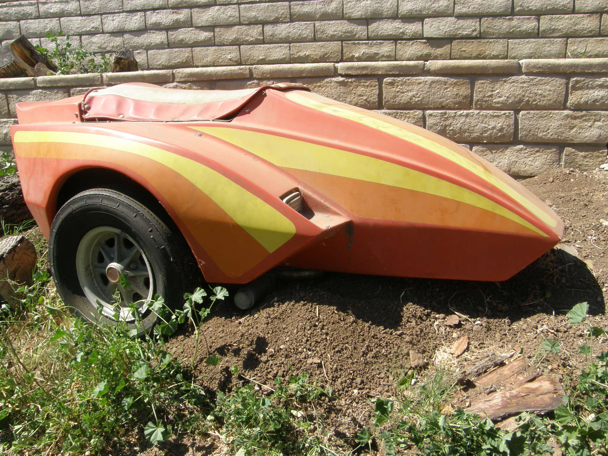 Time to move this unit on. $425 OBO. Nice, light weight sidecar, less than 180 pounds. Will attach to most any bike. Running light in the fender, flared fender covering the Honda 600 car wheel.