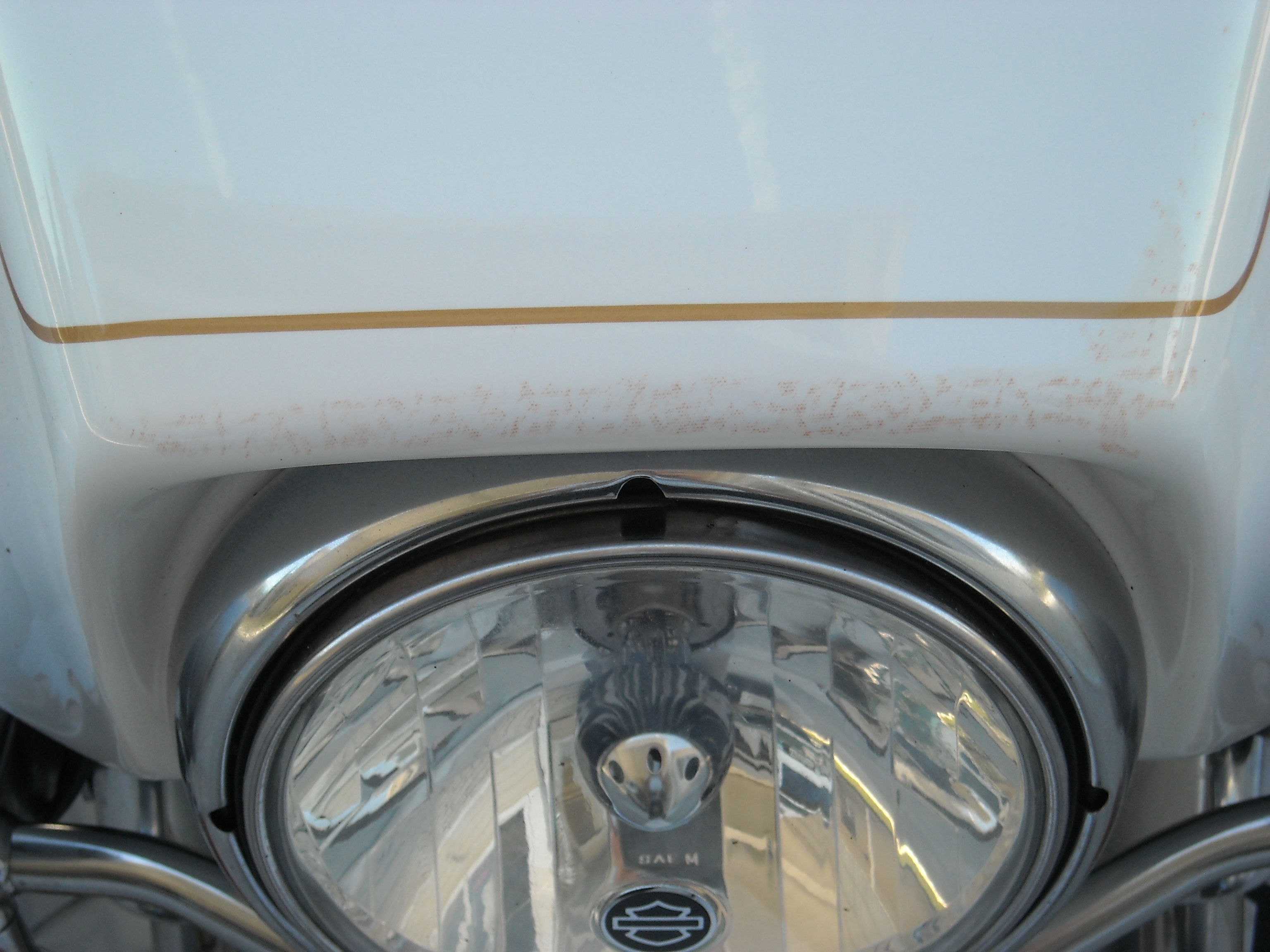 Anyone else had this happen to their white '07 HD bikes, looks as if the paint has a cancer under the clear coat- not happened to the sidecar-painted in a different factory?