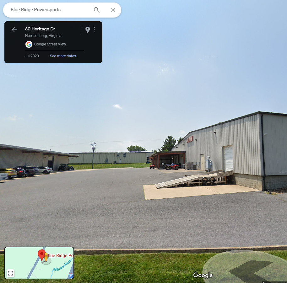 A furious round of emails followed and he said he thought there was a ramp at one of the dealerships in Harrisonburg so I looked up all the dealerships one by one then plugged their addresses into google maps street view until I found the one with a big honking ramp out back.