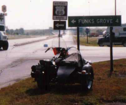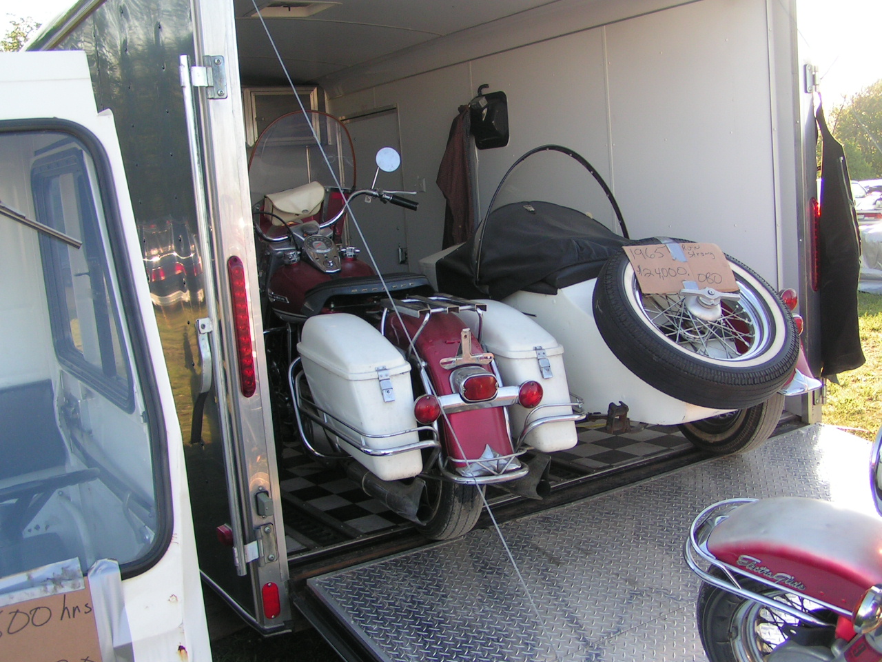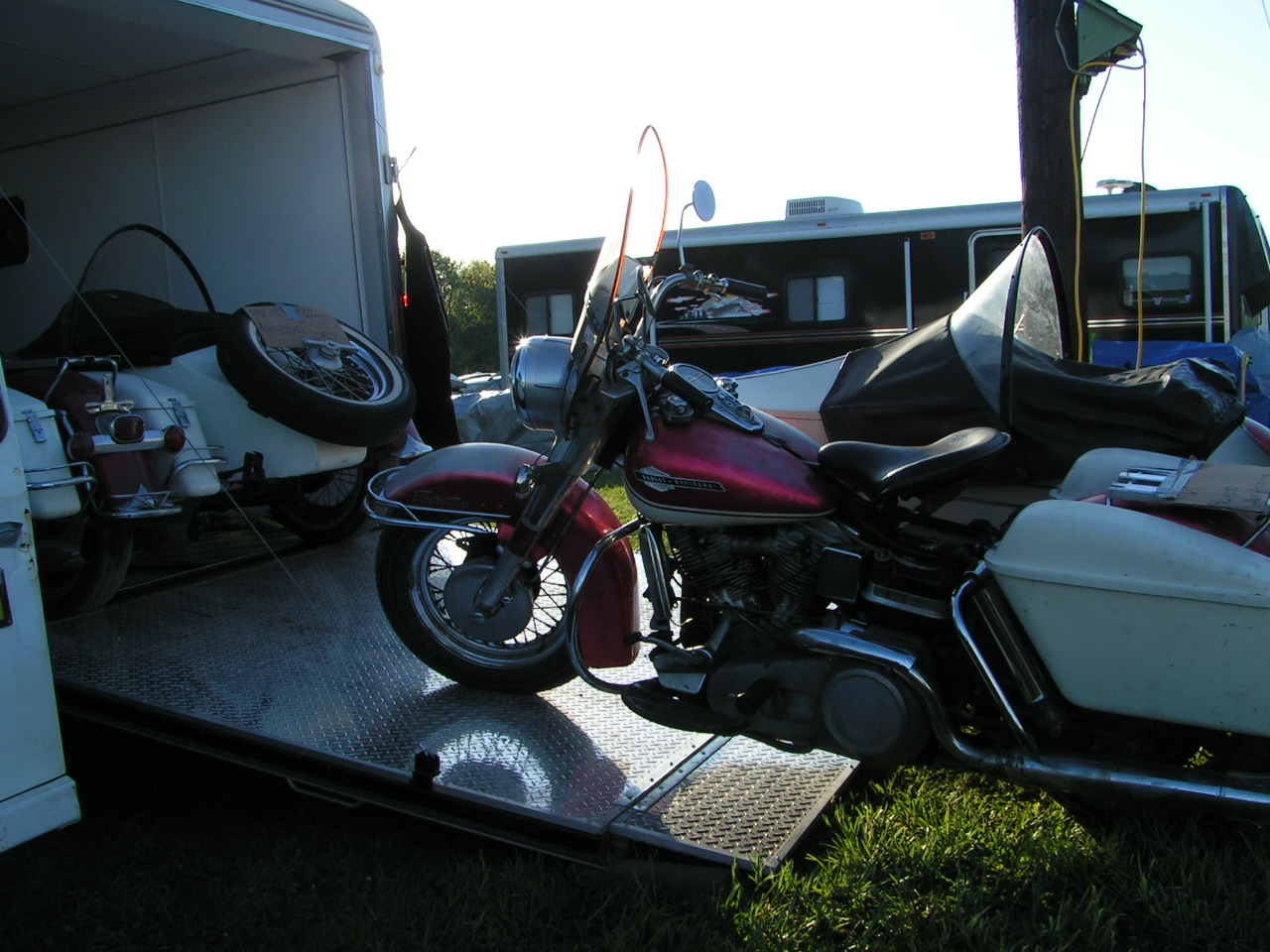 Now the pic. below is my 72 FLH/65 HD sidecar rig in Illinois, heading home to New York from Joyce Canfields National Sidecar Rally in St' Joseph Mo. in 1998
