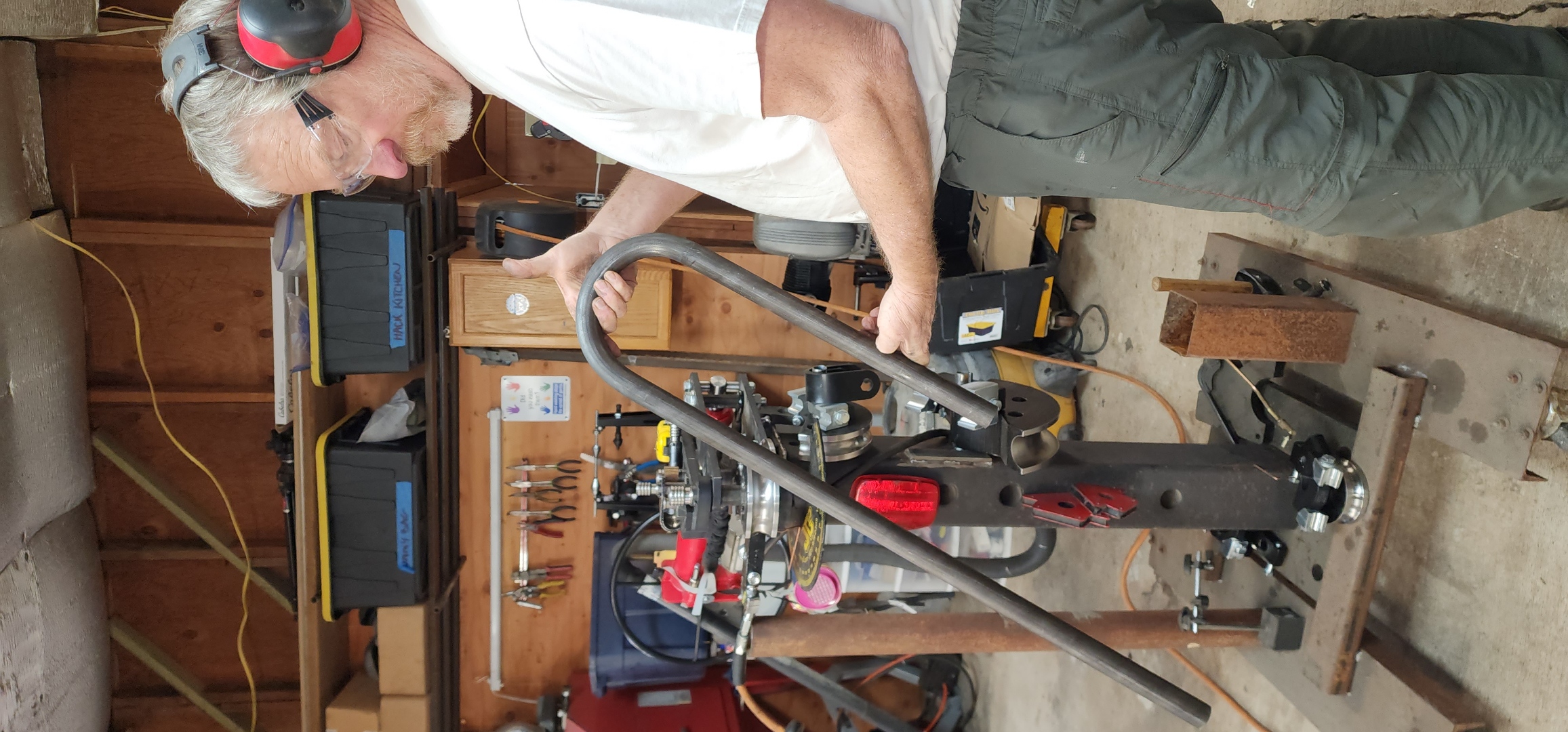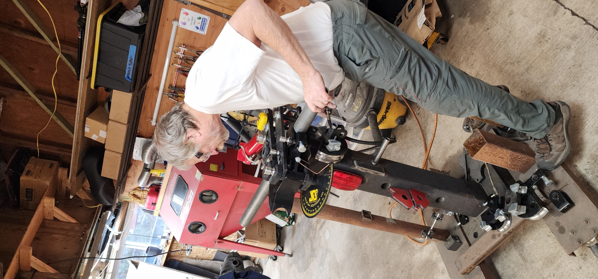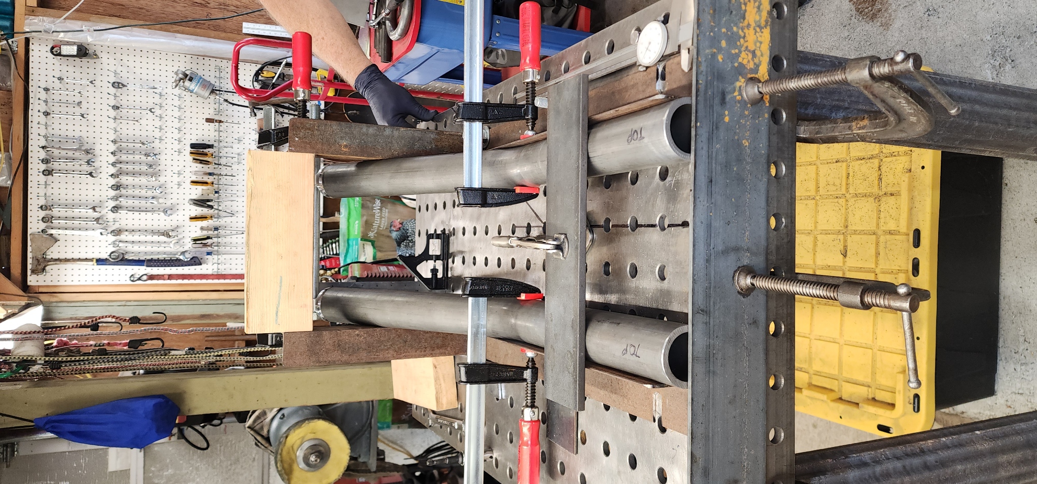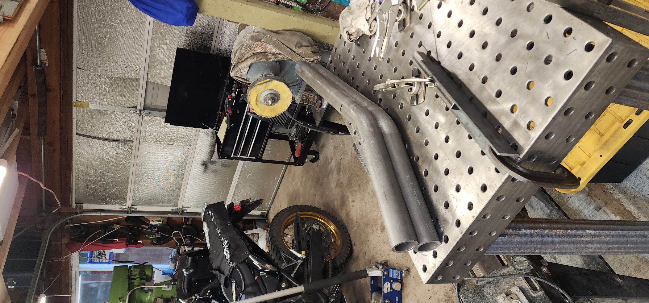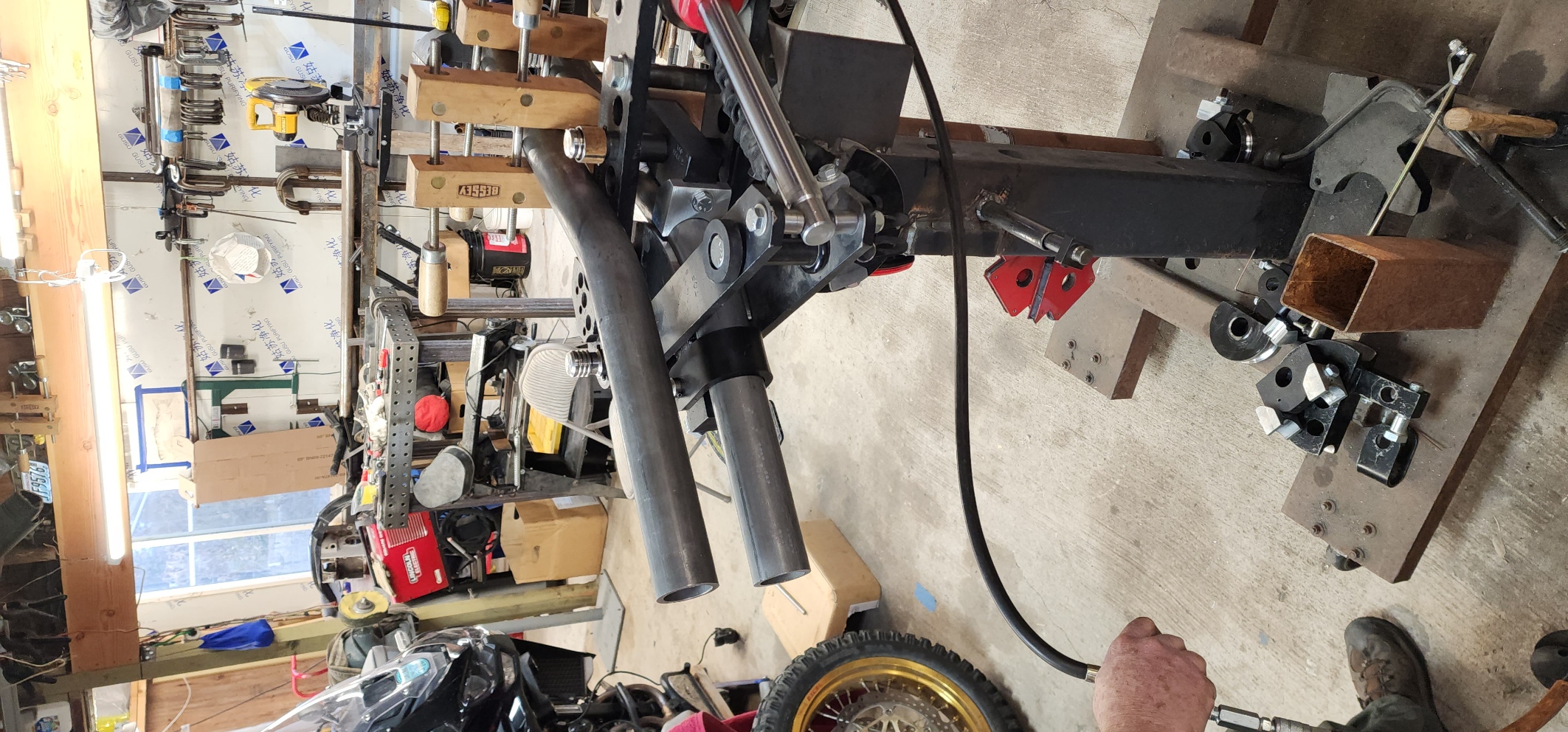 Chuck, bending the new 57mm fork legs, 0.240" DOM wall thickness. Made the tubing bender chug a bit...