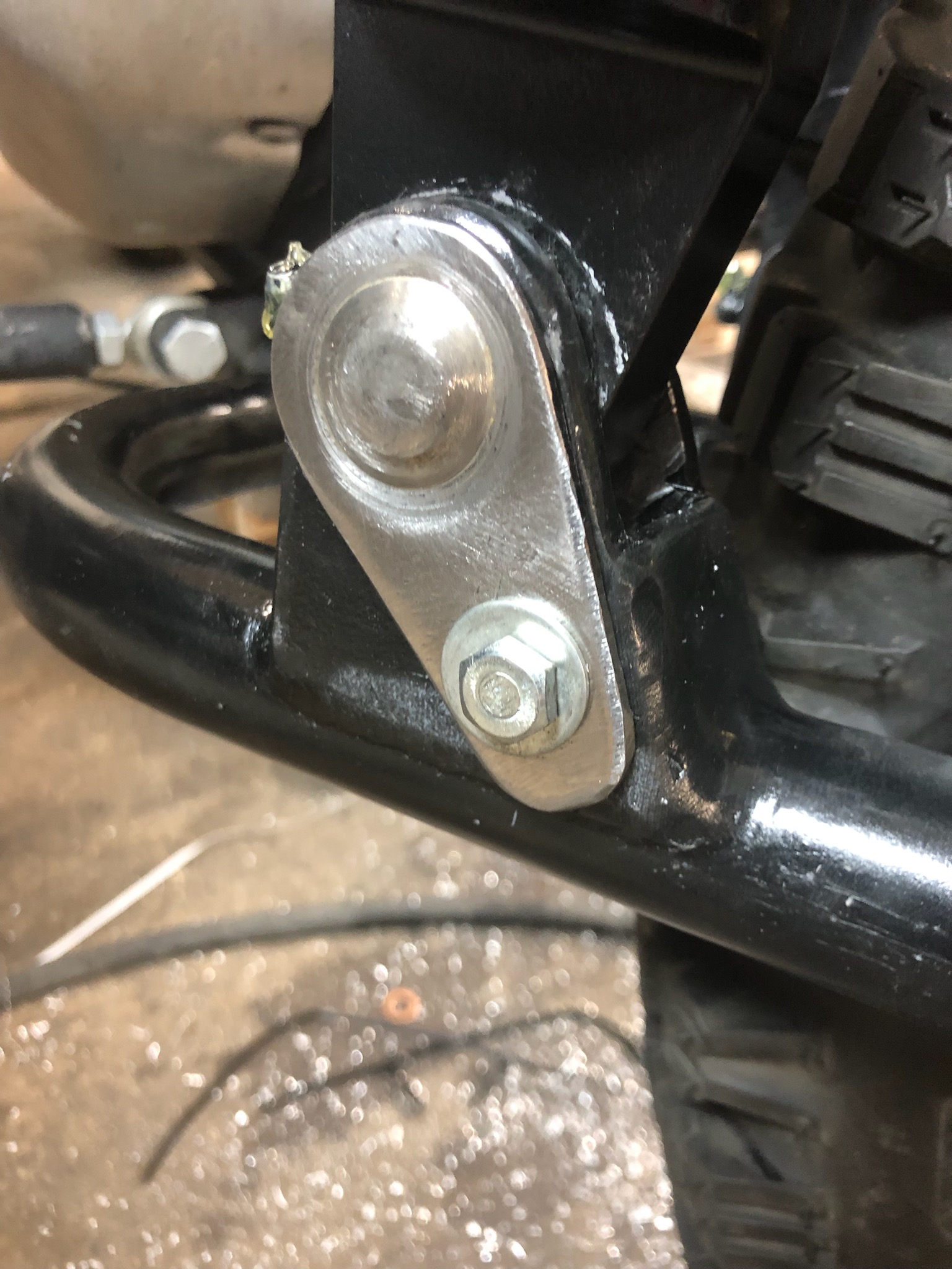 On a stand for convenience. Close up of pivot bearing system, before capping. I like grease zerks... there are many alternatives, but I think for what I want to do with the rig, this system is close to ideal. Note, spring preload is at max, shocks were grossly under-sprung from prior builder; new springs are on their way to correct this.