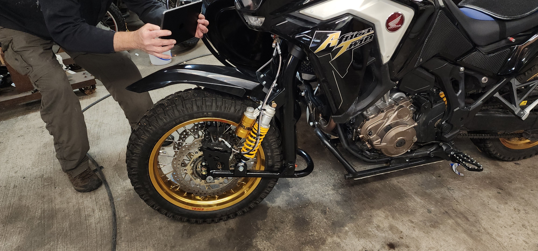 I think a few of you may have seen the build thread I posted on another site, but here are a few pics of the build for what is turning out to be an outstanding Leading Link front end on my 2021 Honda Africa Twin rig. A few also know that I was less than satisfied with the one that came on the rig as part of the original build. Chuck Loftin, out of Eugene OR, built the new one, and I really could not be happier with it. It goes down the road straight, doesn't pull to the right, and seems to handle some reasonably challenging dirt work.