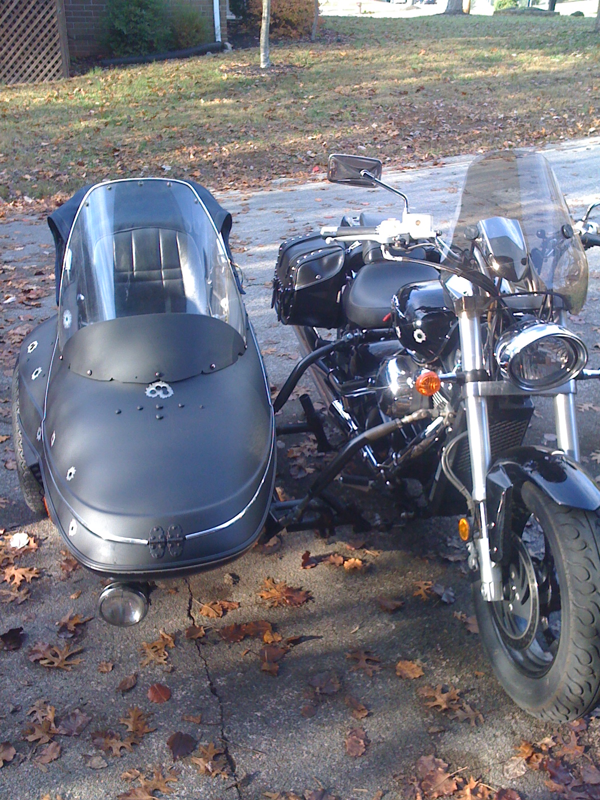 I bought my first sidecar about a month ago. I have some experience with sidecars because my dad has a Ural, but I bought one to mount to my 2005 Suzuki Boulevard M50. After getting it all mounted up and adjusted so it rides decent, I have some questions. It tracks straight very well. On sweeping curves it does pretty well. On sharp curves, such as starting out from a stop and turning, or turning 90 degrees onto a different street, I have to REALLY muscle it...more than my dad's ural. Could this be because of the fatter tires on my bike/sidecar, or because of more rake on the bike? I have a little leanout...maybe 0.25 inch when measuring on rear tire and I have about an inch of toe-in. Also, are there any forces being put on the forks that could cause damage such as warping? It just seems like a lot of unnatural side forces on the forks that a motorcycle is not designed for. I have taken the sidecar off for now because it is just for my wife to travel with me in. I can take it off an on in about 20 minutes. Two wheels is more fun for me, but the sidecar gets my wife to go on longer trips with me. Thanks for any advice.