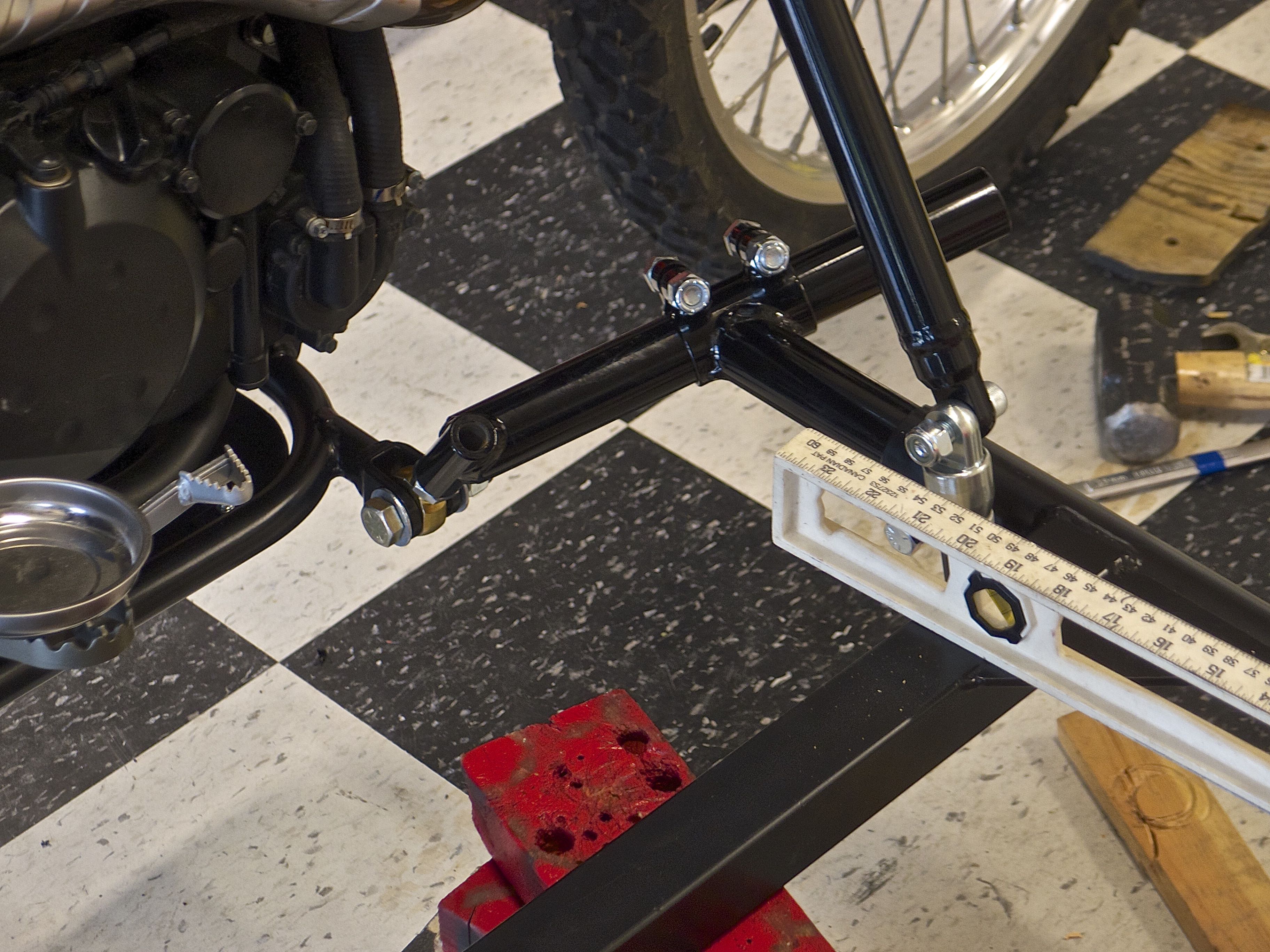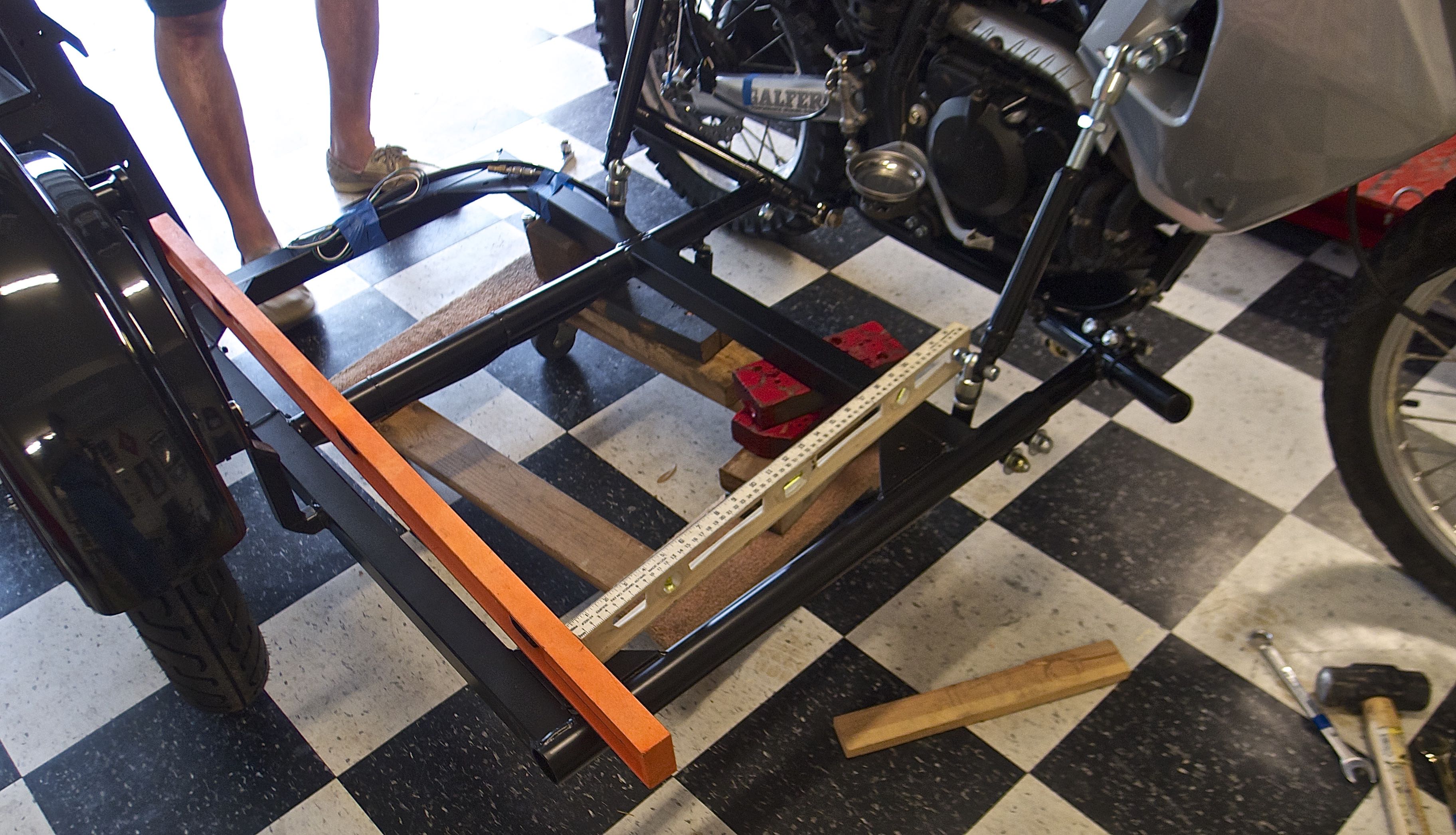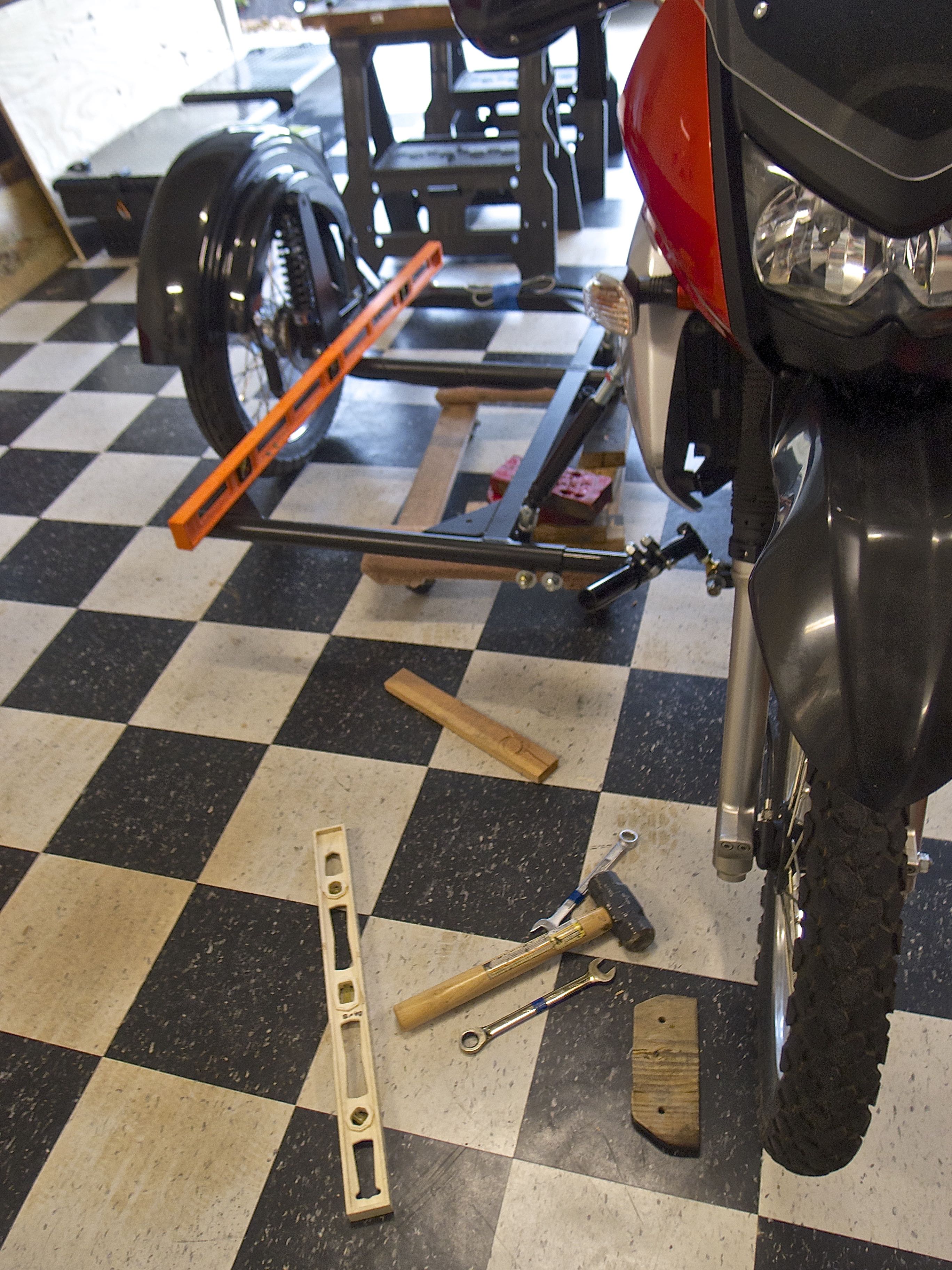 It is critical that the sidecar be level, so we did our best to accomplish that. Two other critical factors are of course Lean-out and Toe-in.