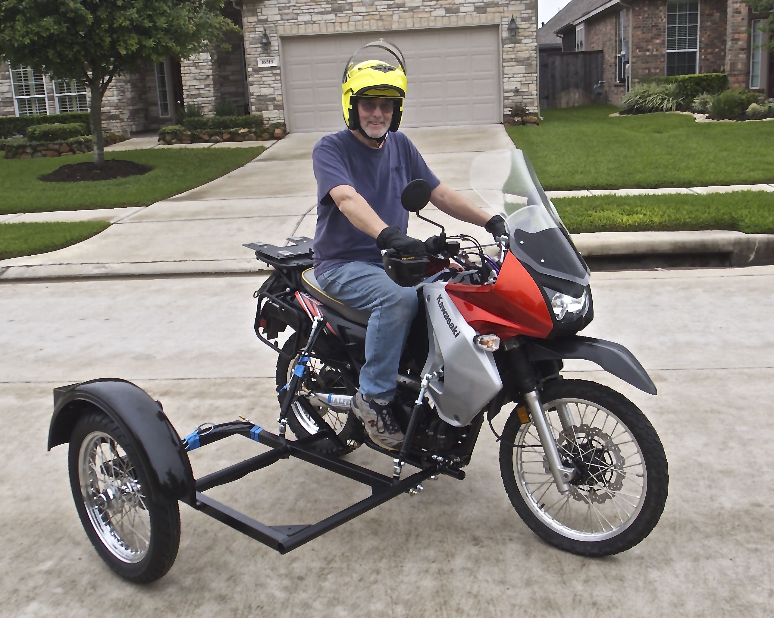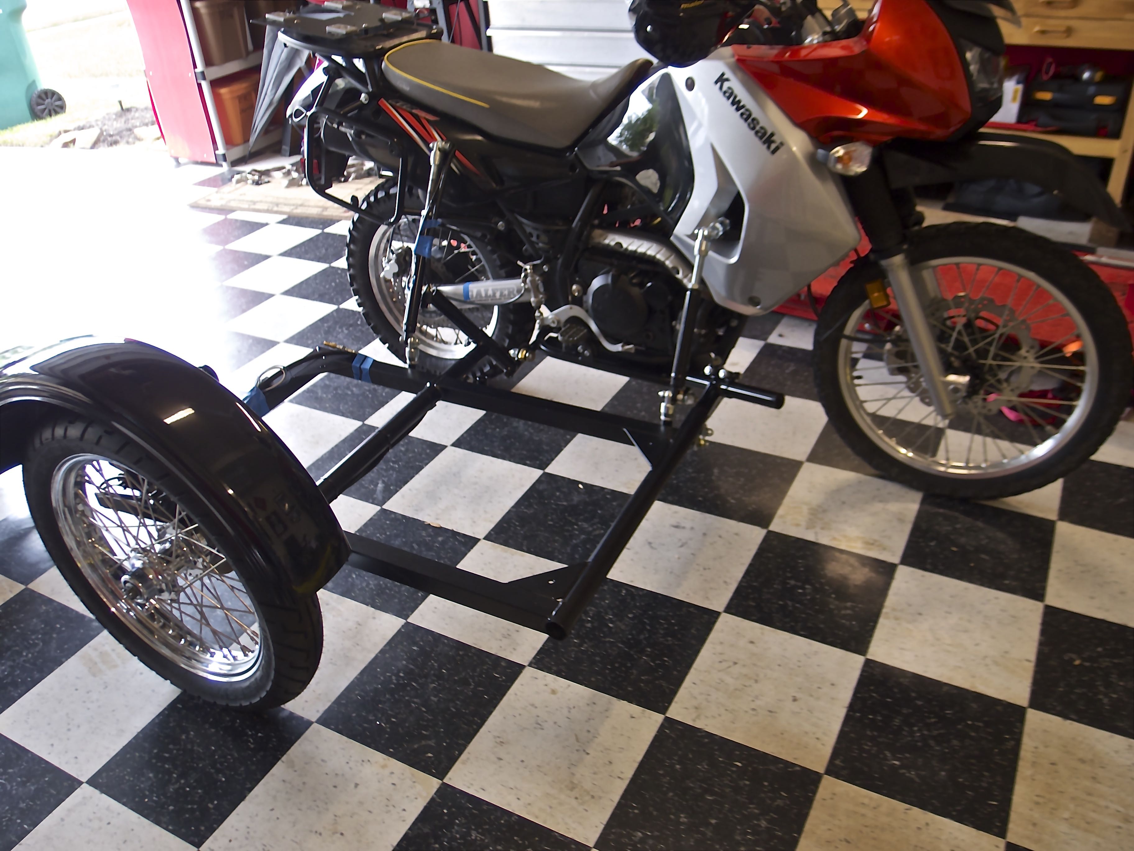 I see the KLR with a very soft suspension. out of my MZ and Jawa comparing experience I do suggest you for the KLR a sway bar tensioner... The MZ with its "Superelastic" sidecar became unrideable in the occasion I disconnected its tension bars swing couplings... That aspect might have been taken care of by the strong center shock you installed.