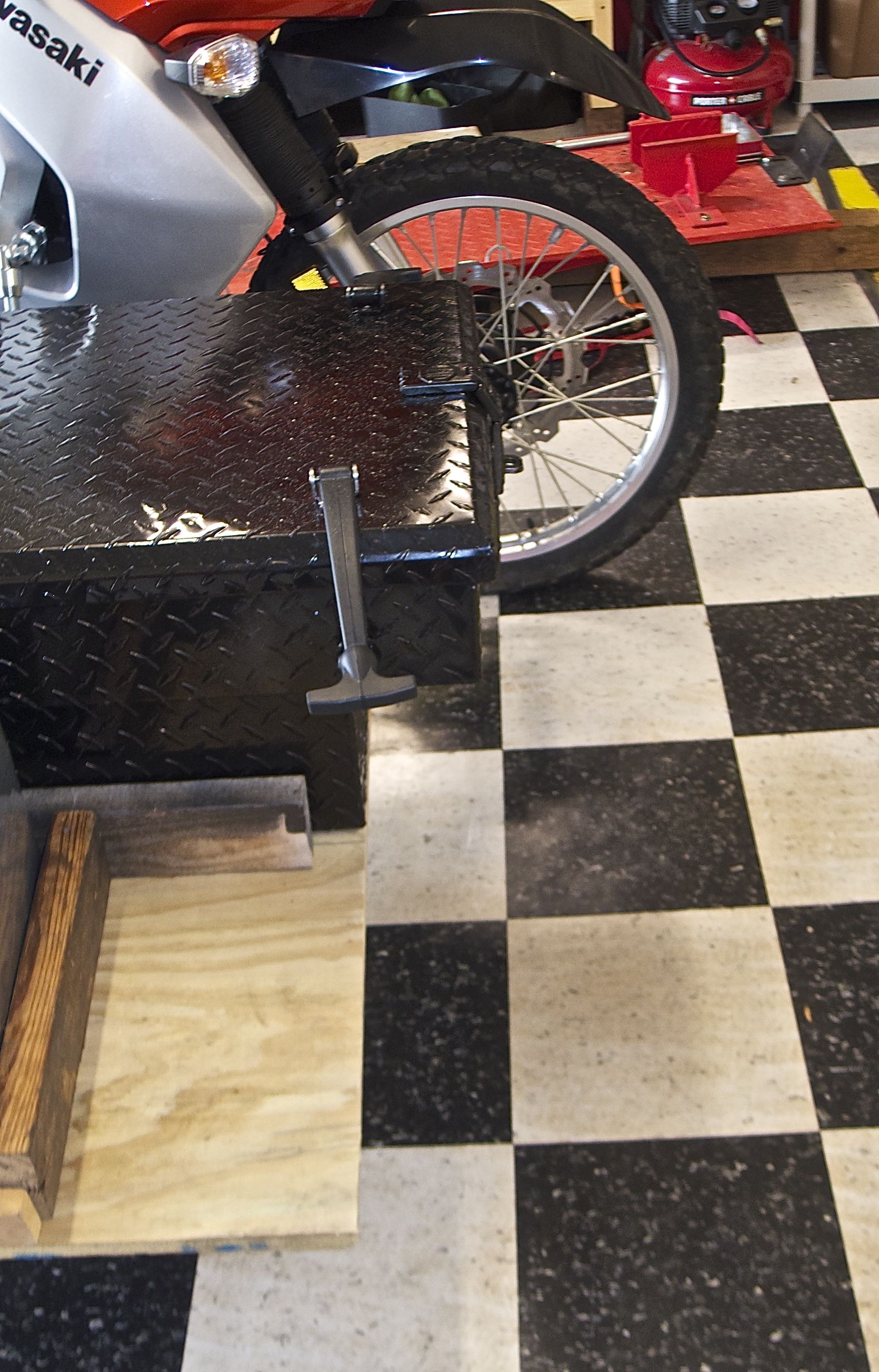 Lined up the rear fender with the tool box... The front edge of the box lines up with the front axle on the KLR.