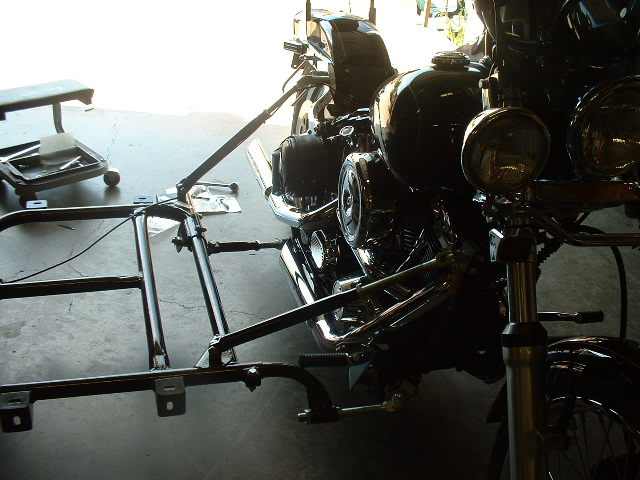 I have a ride-by-side "Texas Sidecar Ranger" now. I have it hooked to an '83 Goldwing, I did the install myself, got install mounting bracket package from Texas Sidecar factory. And with alittle fabricating I got the sidecar hooked to the Goldwing. Goldwing is just not me, I know where there is a good deal on a nice '91 Fatboy. I can't figure out what I would hook to the rear upper arm bracket due to swing arm style on the Softail. Anyone have any pictures, links, directions that could help me out, I would appreciate it.