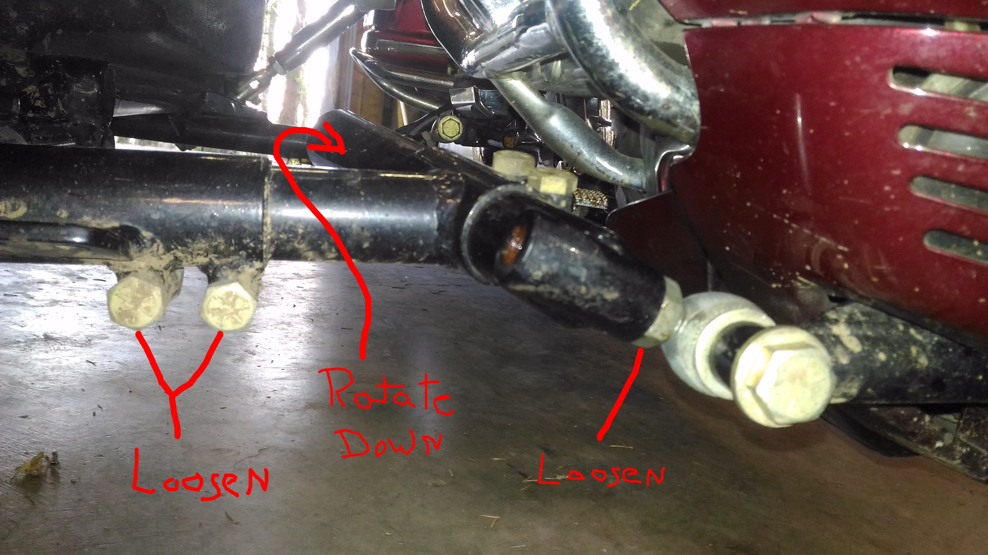 Hi Jay, thank you for that detailed explanation. I do understand quite a bit of what you have stated however the only thing I want to change is the end of the round tube that I have marked " rotate down" It is sticking up above the rest of the frame. The only reason I want it rotated down is so that I can install a 2 inch square tube from the front part of the frame to the rear and get it as close to the motorcycle as possible. It now prevents me from doing that. It will be used for a trailer hitch. On the rear frame that round tube is below the rest of the frame and out of the way. 🙂