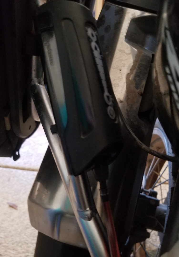 @miles-ladue Though the left arm of the swing arm, rubber grommets, is the way to go... I found mounting the reservoir unit on the upper rear strut of the sidecar mount to be convenient. Just needs to be up high enough for gravity to assist when it opens the valve.