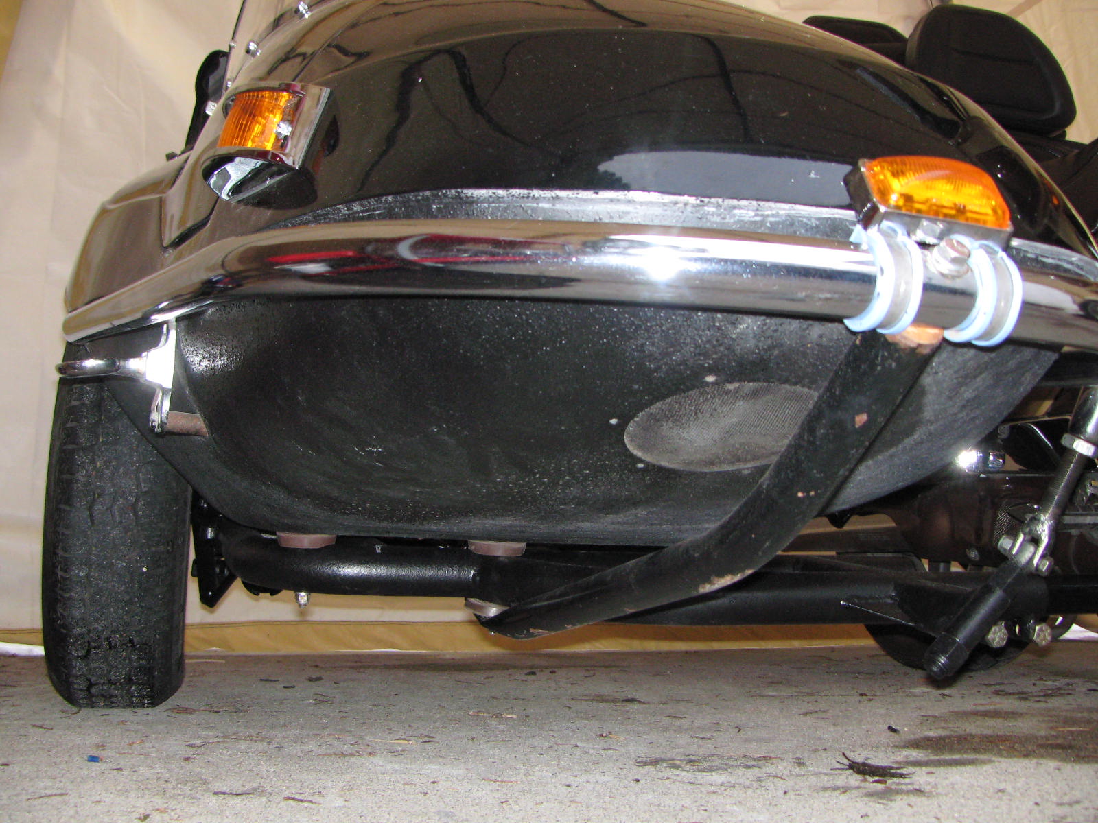 I realize this combo has probably been done countless times, but the whole thing is still new to me, and I want to draw on the expertise of "those who've been there before" to ensure that I'm doing it right. I've been busy over the Xmas holidays working on the sidecar. We've had unbelieveably mild weather for this time of year, which has allowed me to work outside quite a bit... except for yesterday where we had a minus 20C cold snap - Brrrr that was cold (still got a bit done out there tho). In order, I had DMC fabricate me the mounts and frame extension, installed the mounts, took the tub off the frame, had the extension tubing welded on to it, brought the frame in the house, cleaned up a bit of light rust, sanded/primed/repainted the frame, bolted 'er back together, and today I (finally!) hung the sidecar on the bike.