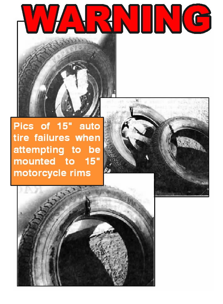 Wes, yes, the failures in the pictures did take place during mounting.They were provided by Hal Kendall in an article years ago. This 15" car tire / Motorcycle wheel debate is nothing new.