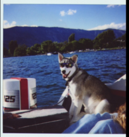 I got a Alaskan Husky,(half siberian and half manmute), just turned 11 and because of tearing out his ACL's from chasing coyote's, he's fat and can't jump. I have a Friendship III sidecar and am either going to make a foldup ramp, or do some fab work on the car, to get him in. I've been working on this Venture/sidecar project for almost 2 years and down to paint now, so doing a little more fabbing won't hurt, but I don't think he's got that much longer left and he gets peed when he sees me taking off on the HD or the Vstar. Here's a pic of him when we used to go out on the boat.