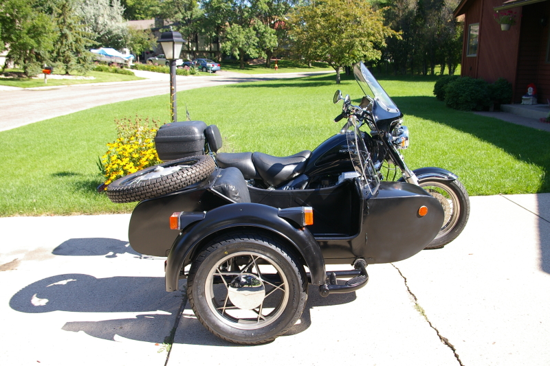 Finally got my Dnepr car mounted properly on my '98 Moto Guzzi V11EV and am having a lot of fun with it. Used Dauntless mounts and they worked great. I have attached a couple of photos for those interested.