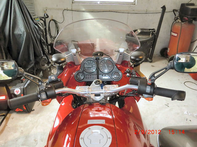 Got the LSL kit from Spiegler installed, what a difference! It uses a superbike style bar that is wider and has less angle than the BMW RS bars. My wrists are now straight and the pull back and width give the steering a much lighter feel. This pic shows the bars installed