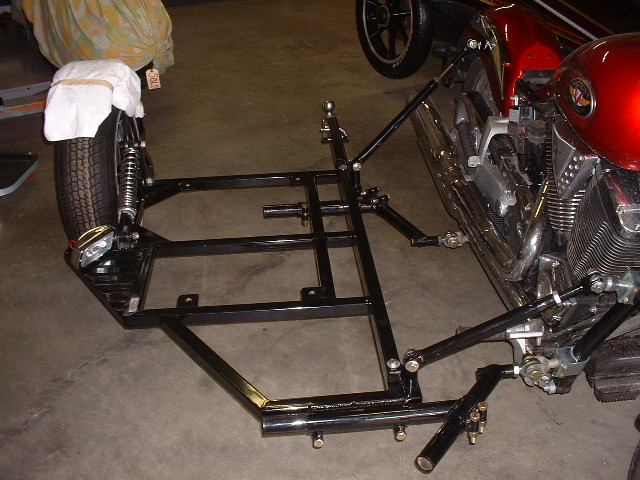 When we were at Hayden Lk. at the USCA Rally there was a fellow that was trying to get one of the locale sidecar sellers put one on his rig but there seemed to be a lot of reluctance for anyone to do so and I don't know why, he had a 3" channel that was long enough to span both cross tubes and enough for the trailer to hook to, I don't know, maybe it was the load that would be put on the tubes that caused the fuss so before you do it listen to what the guys who install sidecars on this forum have to say about it, it's such a simple set up but there must be draw backs to it, like liability, but that's a guess on my part.