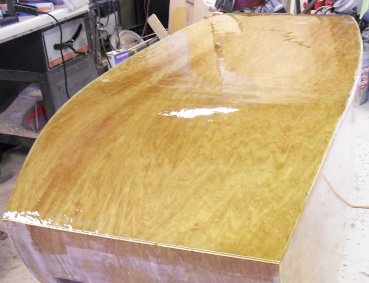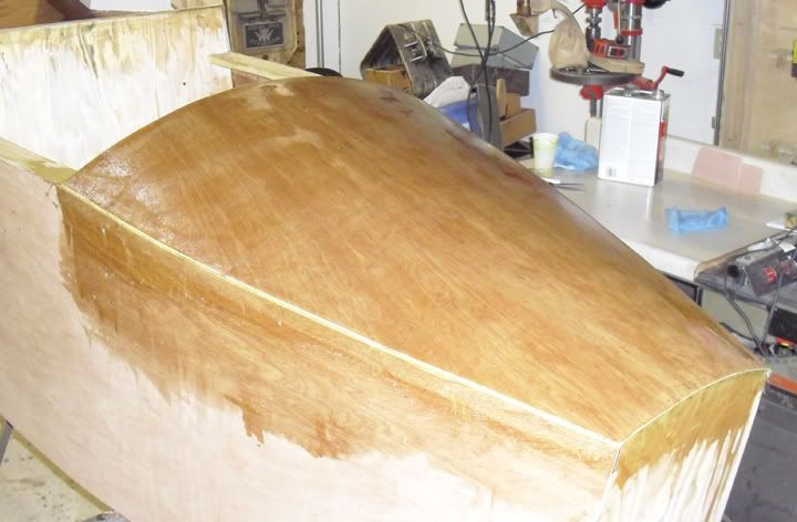 I really admire your work. When building canoes we use the fiberglass cloth "on the bias" when doing curved areas. Your wife will explain it to you ;^). Anyway it makes the cloth lie better and comply more closely with the curves. It also eliminates many of the "V" cuts you have to make when using the cloth along it's length.