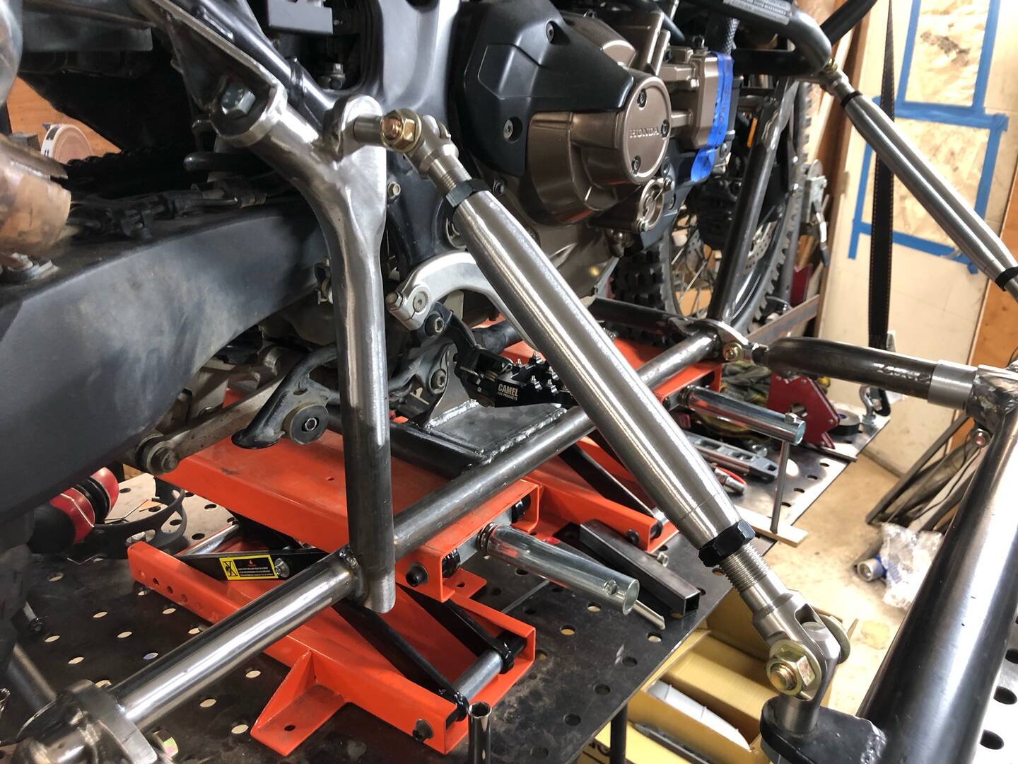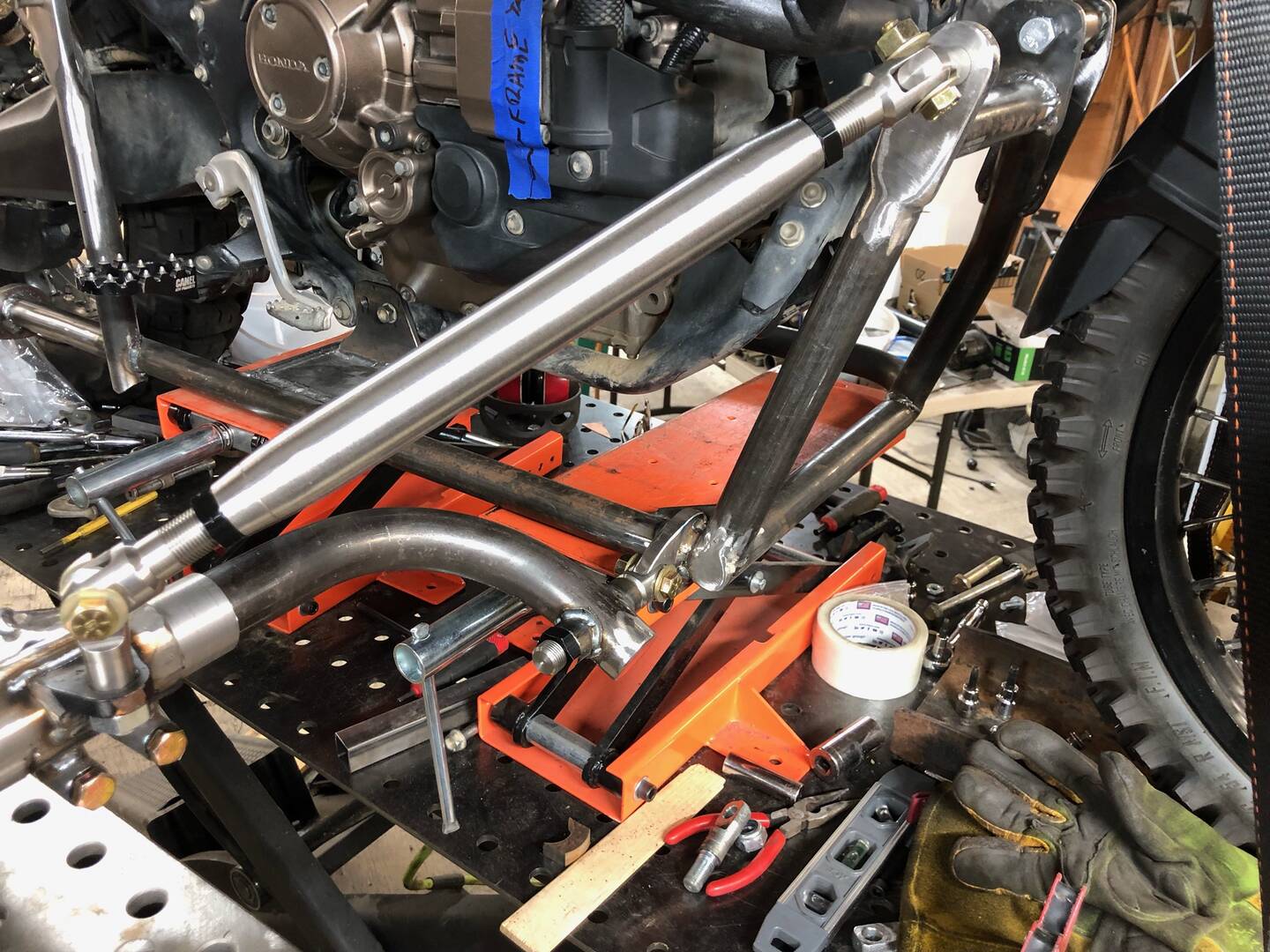 @miles-ladue Chuck continues to refine his subframe design for the AT! Should be stout. The connection to the two foot peg mounting locations on the frame is about as solid as you can get.
