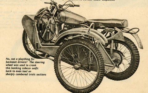 The attached picture with the steering wheel in the sidecar was one of a leaner rig that allowed th epassenger to vary the lean angle while the driver did the actually steering from the bike. Pretty wild concept. These type rigs were also raced at one time.