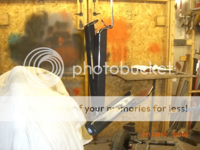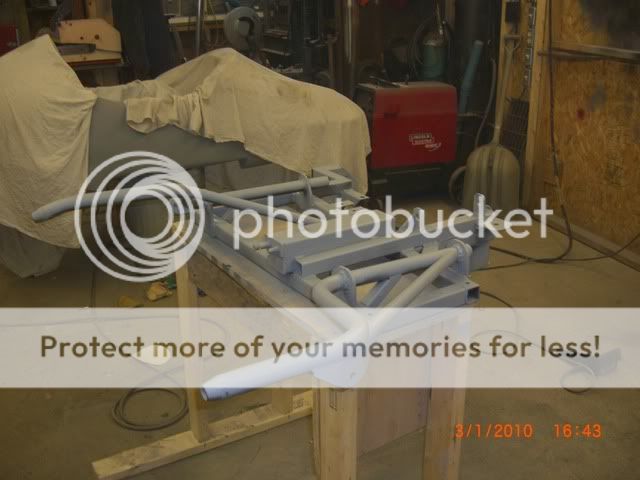 After much sanding I decided to prime the frame to see how it would look with paint. When I had the whole frame done I looked over on the lift and saw the swing arm so I mixed up the last of the lacquer primer I had. I was 1 table spoon short with the acetone thinner so I added some mineral spirits.(i know some of you are laughing now.) well for the ones that aren’t it seemed to mix so I shot it on the swing arm and one more coat on everything else. 5 minutes later the primer lifted off everything. The only good thing was 95% of the primer could be blown off with an air gun. So I blew it off and reprimed everything with enamel primer. I don’t know why I can’t take my time when I paint I had the right thinner in the back of the paint cabinet. Its drying now if it looks ok tomorrow I will paint it if not off to the sand blaster.