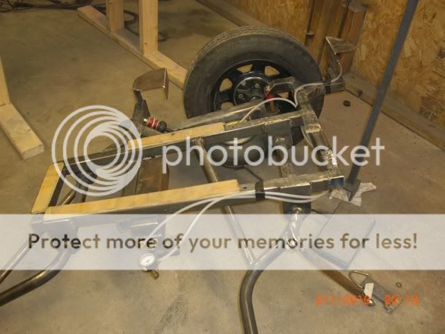 I made a tank today for the air ride. The tank is permanently mounted under the frame.The tank will be pumped up to 150 psi. The regulator will keep the air bag at 8 to 15 psi and can be adjusted for the load in the car. I still need to add a release so I can let air out of the bag when needed.