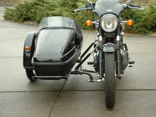 My current rig is a BMW R100R with K100RS bars on it that I have widened a little. It wobbles and steers hard but is fin ewith me for now. It has on eof our Freedom Cruiser sidecars on it..see attached picture. I think you sure got me beat as far as 'the look' goes 🙂