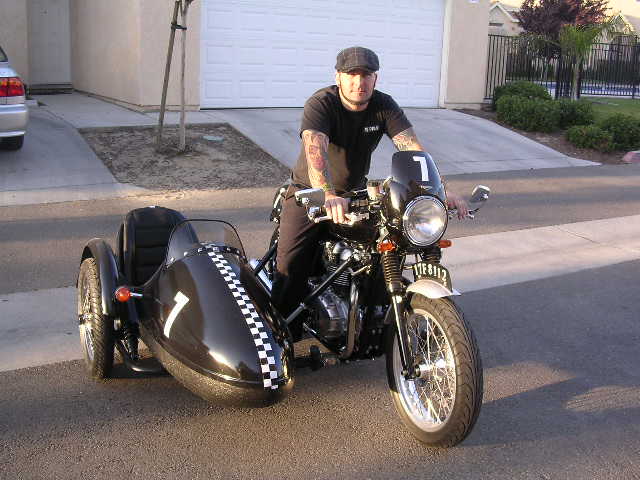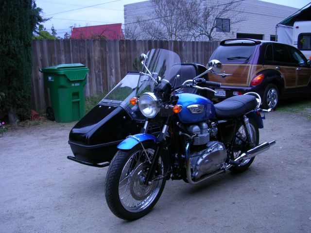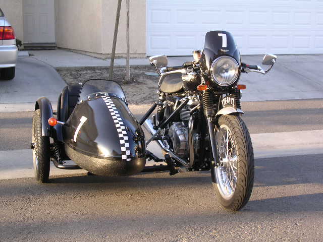 ...Wot a sweet set up you got there...ive got a 900 bonnie with a chair i'm going to marry to ...any comments on were and how to attach the two ? welded or bolt on fixings ?..mines black as well...thanks, doe doe
