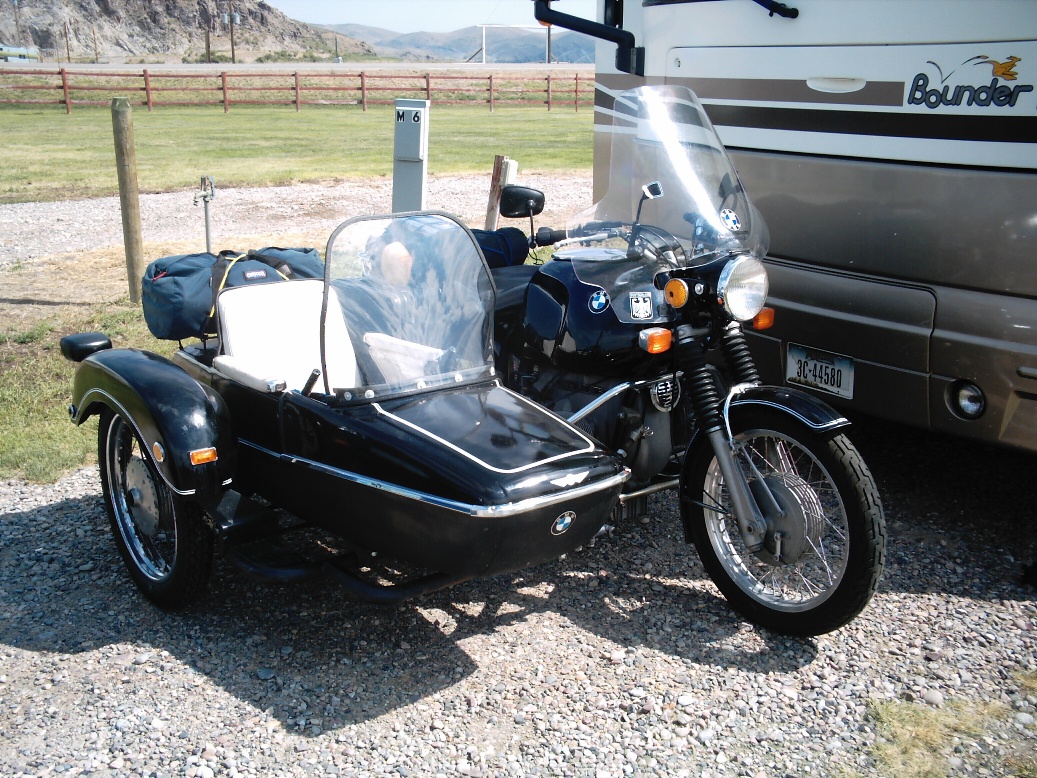 BMW made an assortment of different final drives for the /5's. I installed a 32/9 final drive on my R75. I found a nice one for $150.00. The drive ratios usable for a hack are: 31/9 which is a 3.44-1 ratio, 32/9 which is a 3.51-1 ratio, or the 35/9 (Euro R45) which is a 3.89-1 ratio. I used the 32/9 which puts me at 4000RPM at around 60 mph. I can still run up to 85 w/ no problem. (down hill w/ tail wind). I bolted a 1974 900cc top end/ cylinders and pistons to my R75. Still looks exactly like the R75 but now is at 60 H.P. rather than 50 H.P. The extra H.P. isn't a glaring gain but the torque and power are definately increased, but the gas milage is decreased.