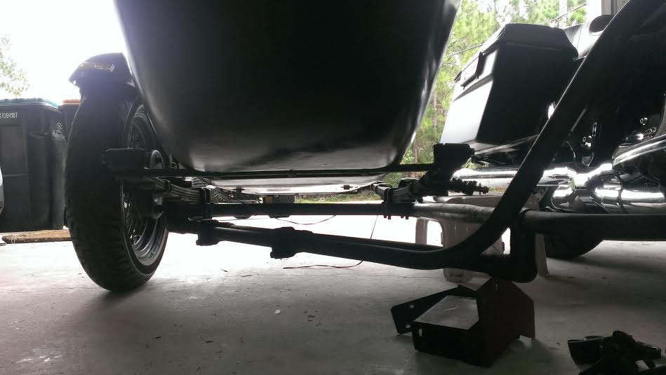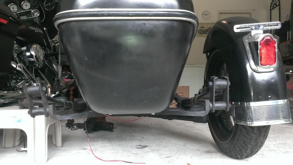 I don't see any damage anywhere. That inner spring does have two loose spring straps in the rear, maybe that has caused weakness and bowing. It wasn't on a bike when I found it in some pickers garage, and he also had no bike history on it. It appears to be straight and true and the body has no damage and seems original fiberglass and paint. I wonder what it was mounted on, it does have some work done on the rear mount area, but I cant figure out why. I greatly appreciate all of the expert advice everyone is giving me, I am not a sidecar expert. Thank you.