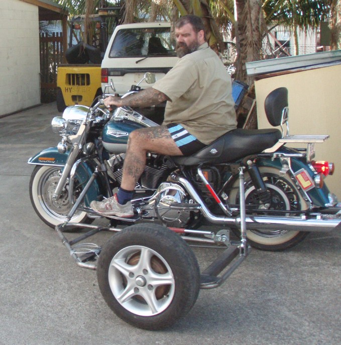 Thanx whitsundaytattoo, looks like you did a great job! I will be mounting it to a V-star that has a frame just like a H-D soft tail. From your pics it looks like I will be mounting mine in the same places on the frame as you did. I do not mind welding on the mount points if that is the better/saferway, but if I do take it off do you need to readjust the hack to the bike or is it still right were I left it? I is hard to make out but it looks like your 2 bottom mount pivet. From what I understand I need to set the lean angel with the top 2 mounts and so I am assumimg the bottom need 2 need to pivet. I read the book on this site and understand what he is saying but it did not have any good pics of the mounts close up. If whitsundaytattoo or anyone else here has some good close up pics of you mounts I would love to see them.