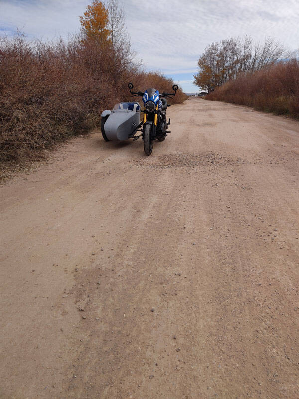 It's kind of hard to do the old "two motorcycle headlights split" trick from the movies with a sidecar.
