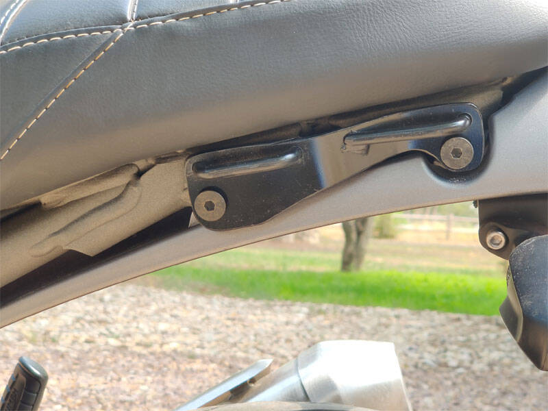 Left bracket mounted on the bike with temporary fasteners for a bit of context to how the right side will look, without the sidecar mounted.