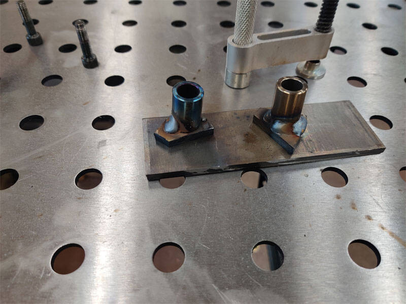 The hex head cap bolts just fit inside the tubing, so careful placement on the base plate was critical.Β The fit up table sure made that easy.Β Step one done for under $10. 😎Β