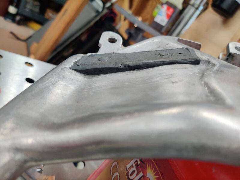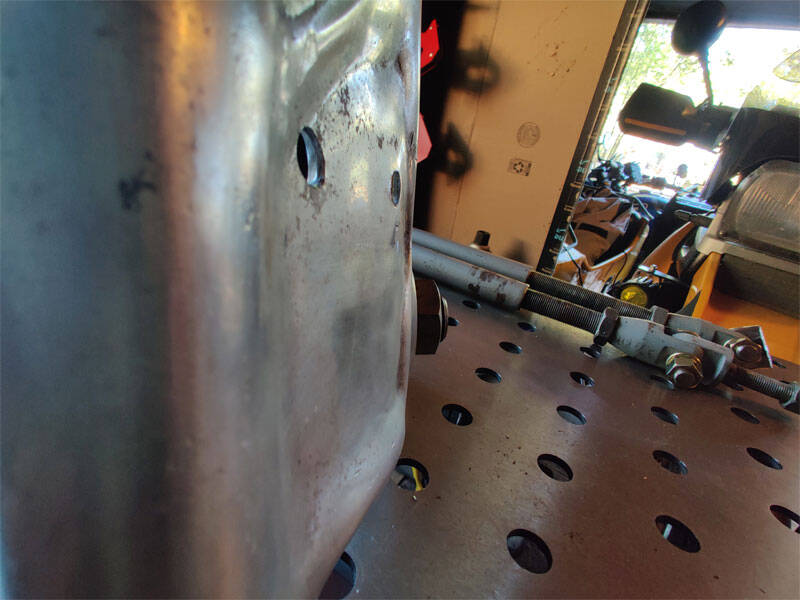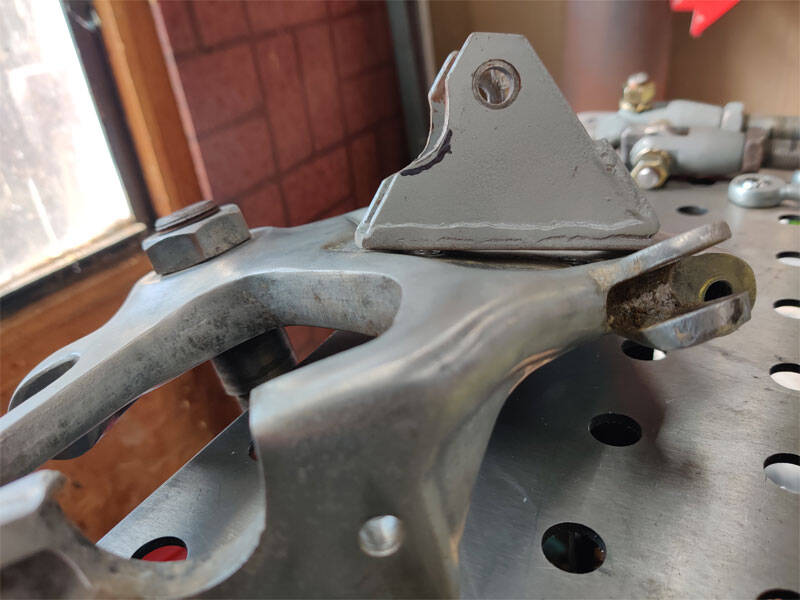 I'm feeling better now. Funny how something so trivial can really chafe my hide. Motorvation should have done this during the build. Set the original bracket in place to make sure the fillet was correct. After lunch the holes can get re-drilled, then it will be time to start hanging stuff up to paint.