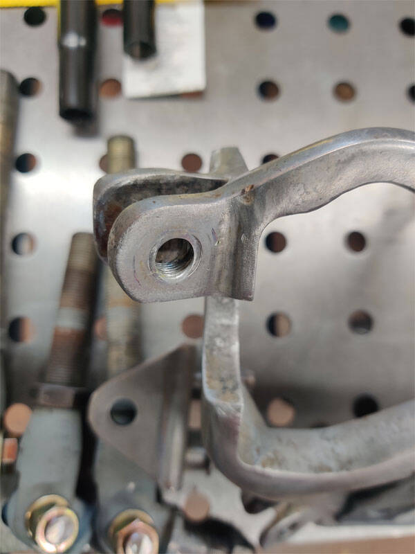 Mulling over what to do about the lower shock mount that bolts to the hub. Definitely an afterthought on Motorvation's side of things. Not sure how the original designer would feel about what was done. Pretty "hack". To be fair, and as stated previously, the original mount lasted with no signs of possible failure for over 10,000 miles (if I understand the original owner's info correctly). I'm just not comfortable putting my name to that. So it will get enhanced, one way or another.