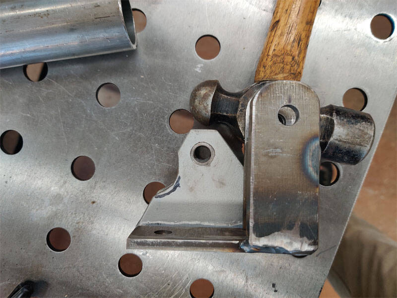 I'm feeling better now. Funny how something so trivial can really chafe my hide. Motorvation should have done this during the build. Set the original bracket in place to make sure the fillet was correct. After lunch the holes can get re-drilled, then it will be time to start hanging stuff up to paint.