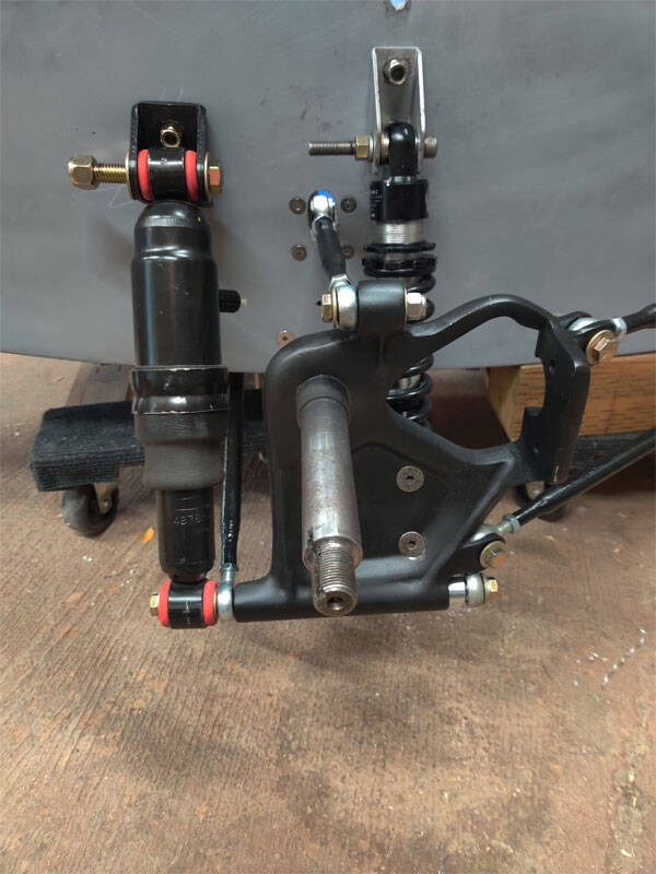 Took quite a bit of work to get things right. The way the coil over shock was setup it was in a bind, causing stiction. I used the opportunity to lower the shock 1-1/2" with a new lower mount. Along with lowering the shock via the new bottom mount, it was moved in about 5/8".