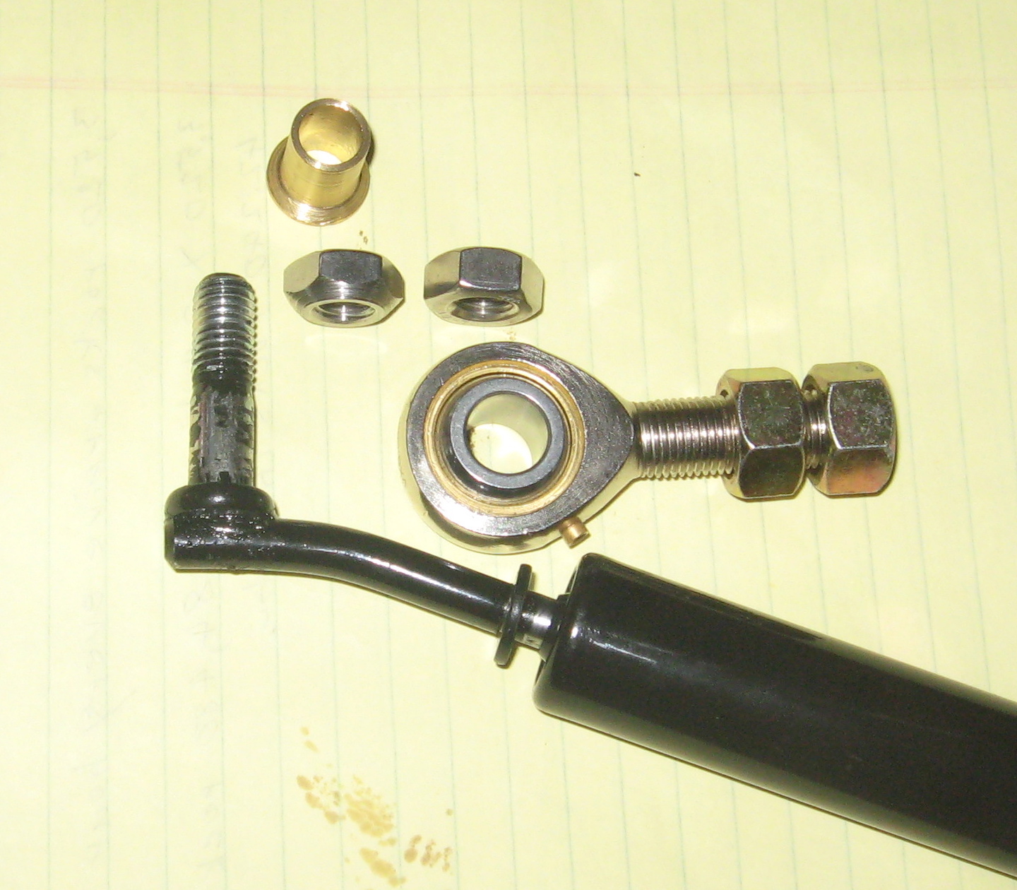 That I made a tapered end on the bushing, and cut a taper on one of the nuts. This is to allow the maximum swivel effect of the heim joint. The second nut is to lock things together.