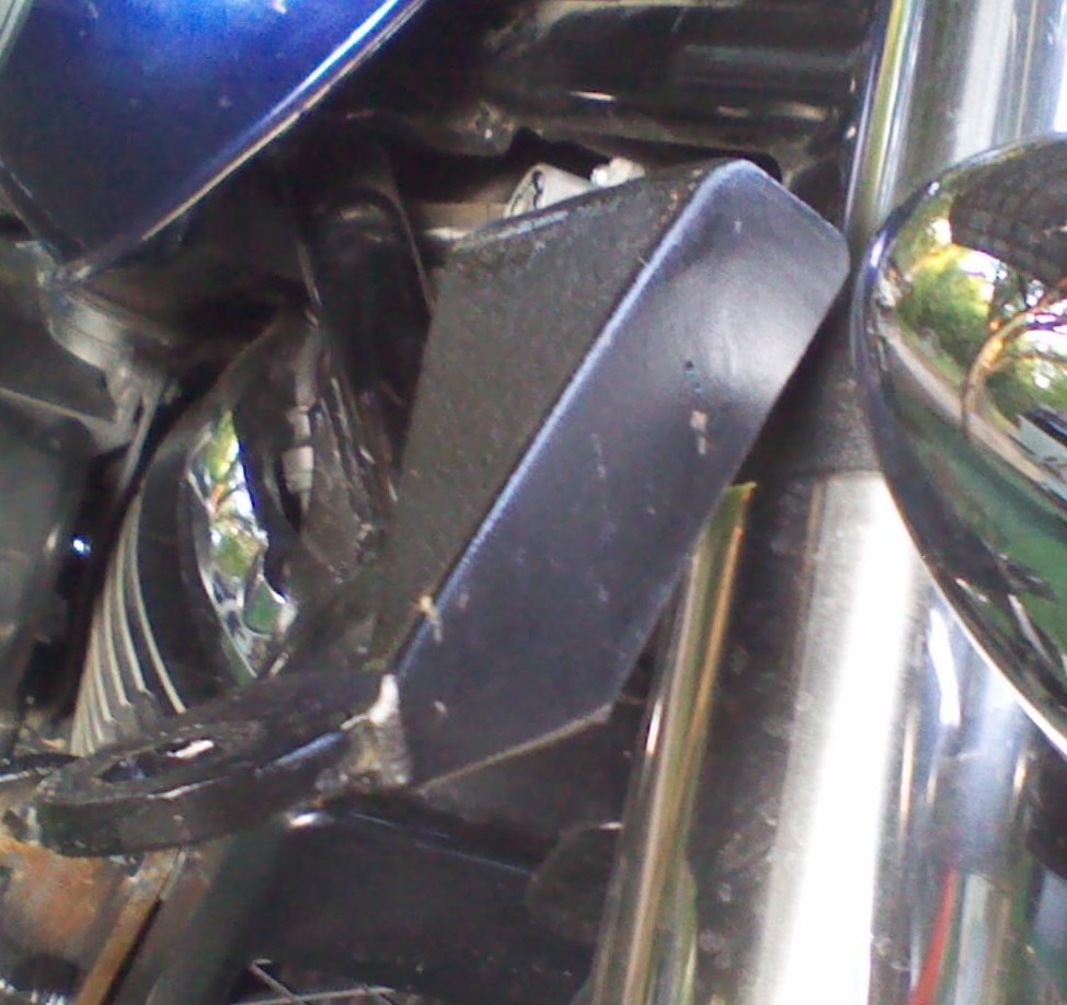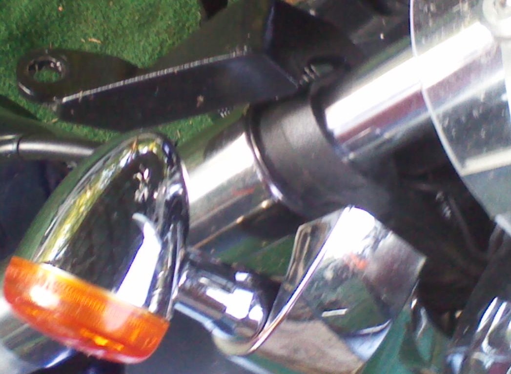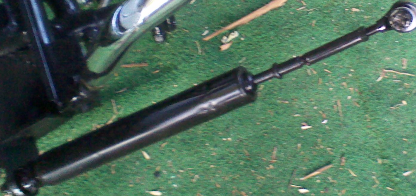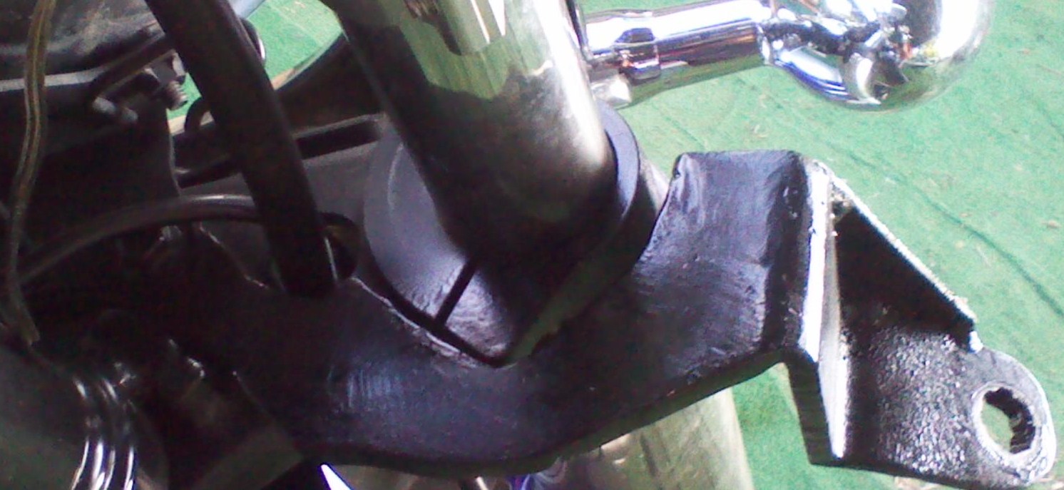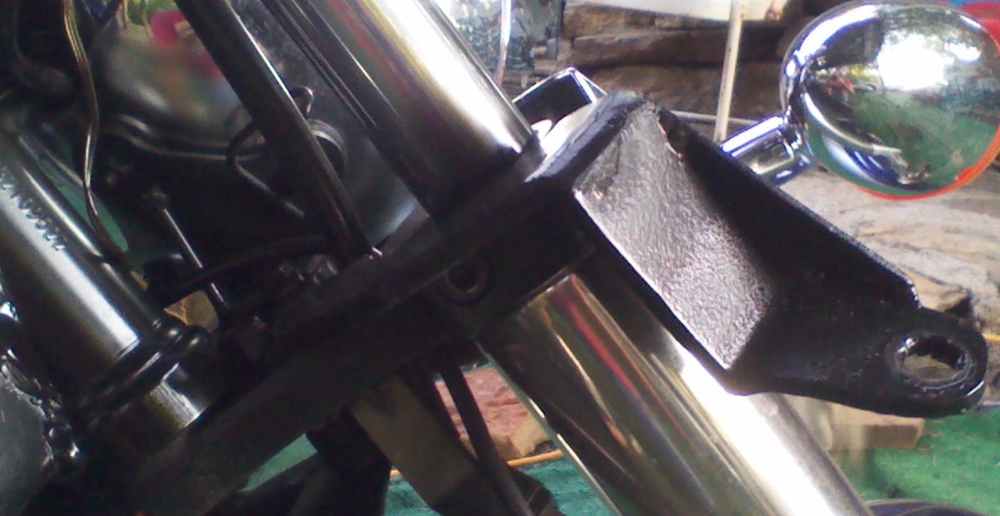 when i put the damper on all the shake went away. the side car is off right now but you can see the bracket i made it bolts to the 2 bolts that holds the headlight on. the shock mounts by the front upper strut.