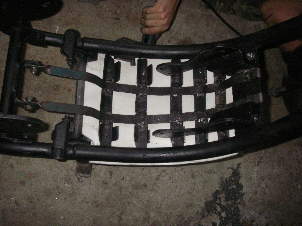 I recycled the KLR saddle bag brackets and a loo top. Not beautiful, but useful.
